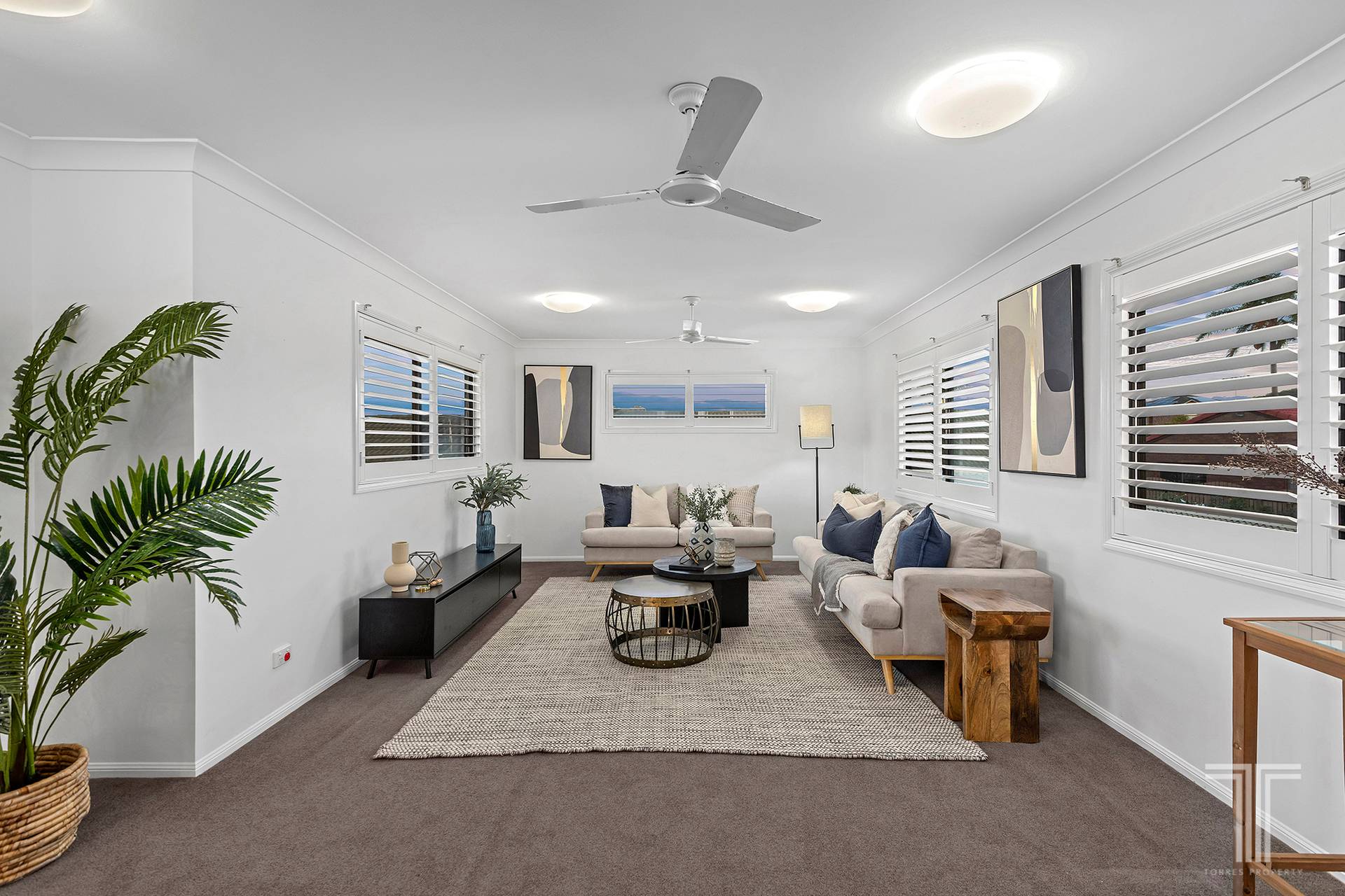 Step inside and move across the lower level, revealing a spacious living/dining room, a meals area and a well-appointed kitchen featuring AEG appliances and a walk-in pantry. Taking full advantage of the 758sqm block, the property hosts a large covered outdoor area and an elevated backyard, creating an alfresco retreat for entertaining, playtime and family fun.