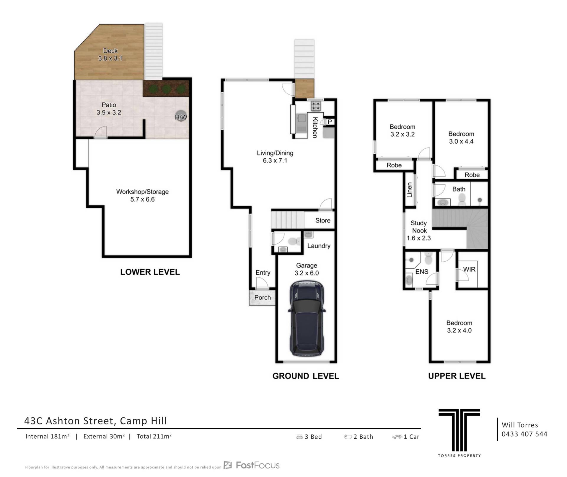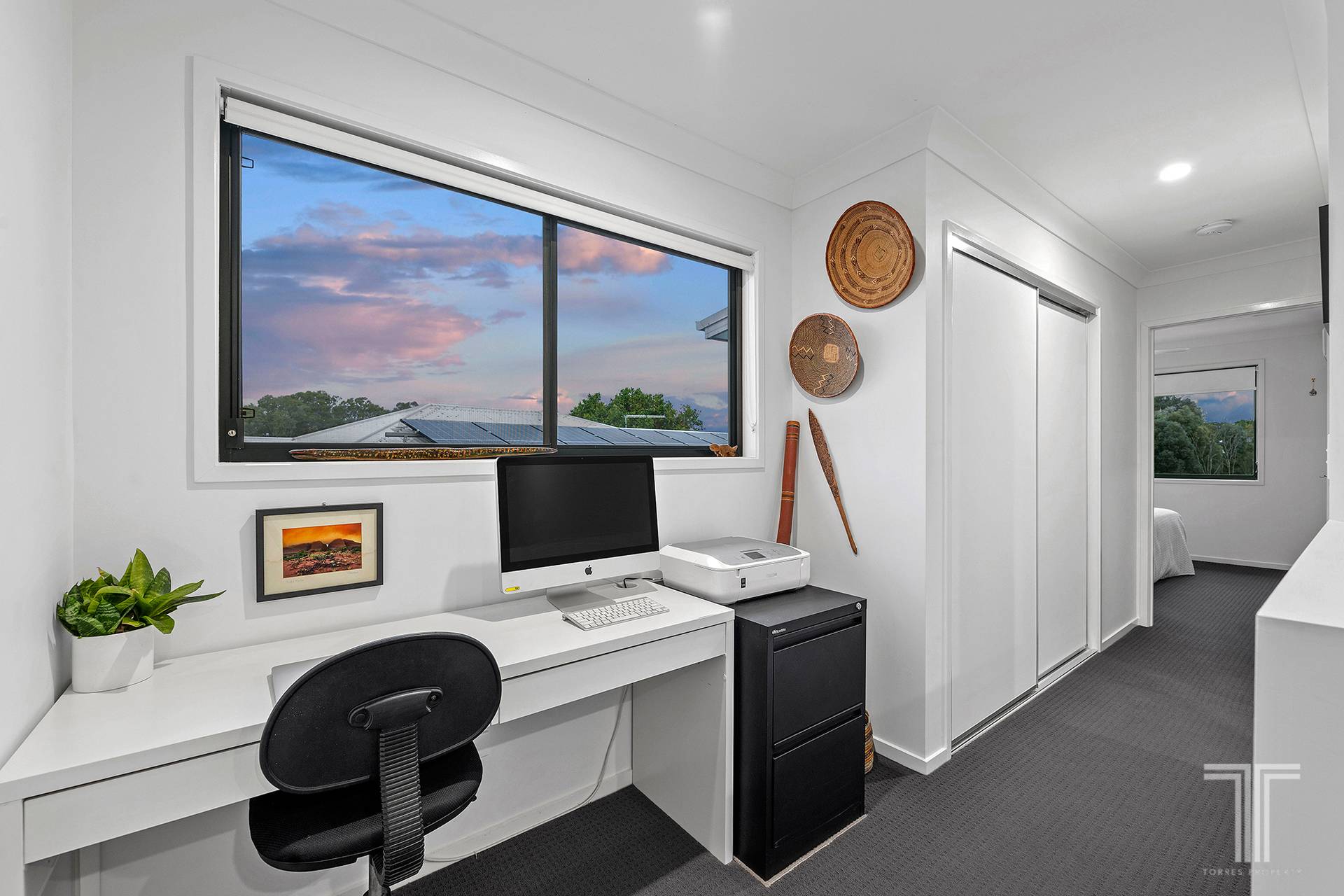 A study nook is positioned upstairs alongside two bathrooms and three generous bedrooms, capturing the stunning city views and leafy outlooks across the bird habitat. Parents will love the layout of the master suite, featuring a walk-in robe and ensuite. A powder room and garage are located on the entry-level, and a large workshop/storage area is found downstairs.