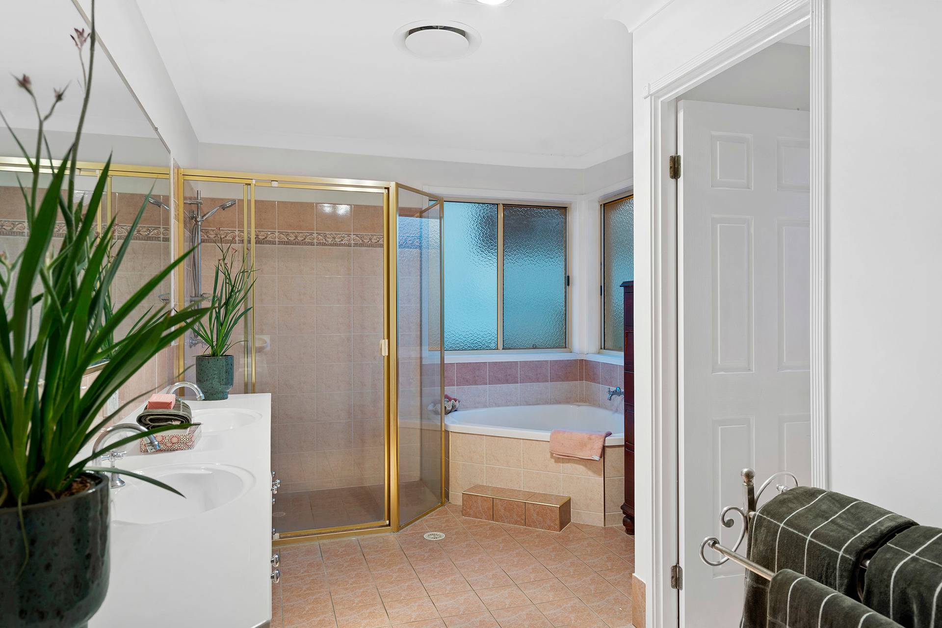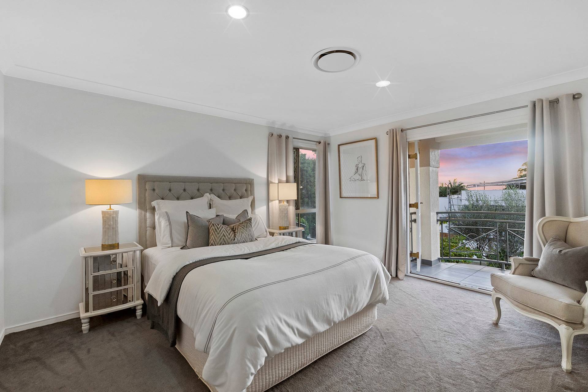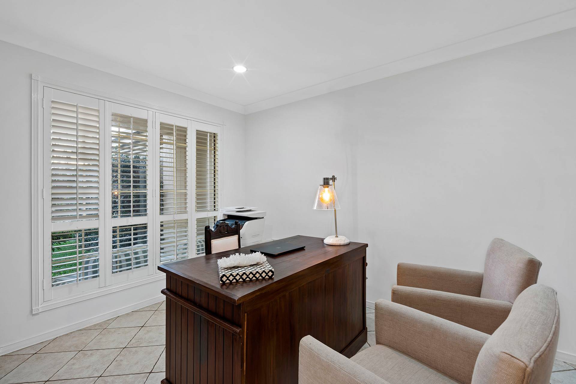 The home features an office, five bedrooms and four bathrooms. All three bedrooms upstairs boast walk-in robes, and two open to beautiful balconies, including the master with a spa bath ensuite. Both downstairs bedrooms feature built-in robes, and one also includes an ensuite.