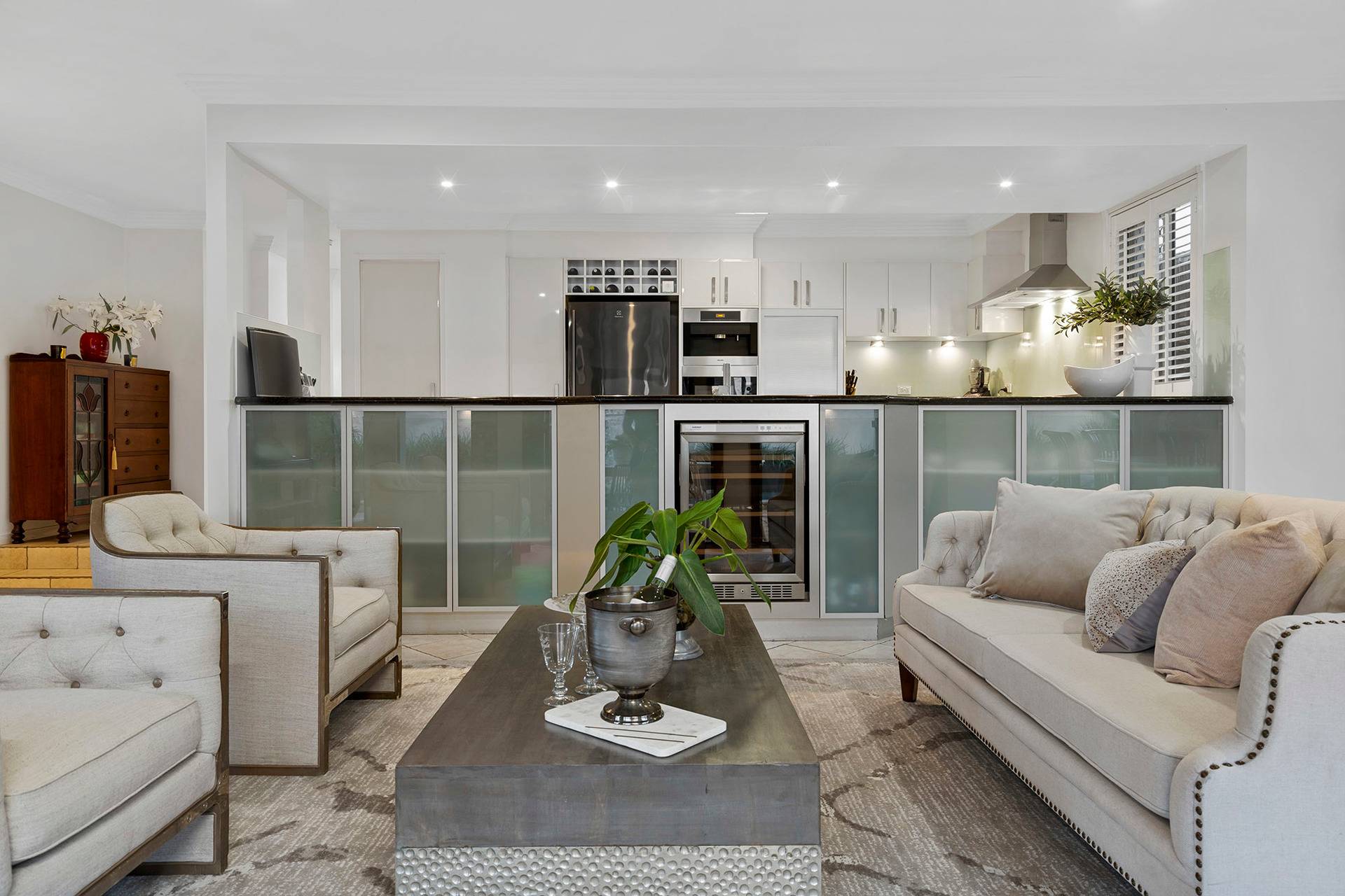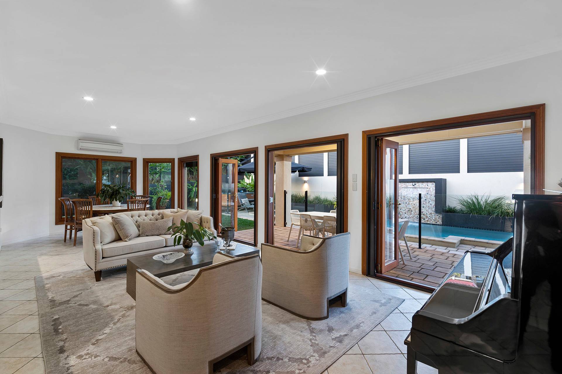 Consciously crafted to invite sunshine, breezes and seamless flow, the property displays large windows, plantation shutters, bi-fold doors and ceilings up to 2.7m.