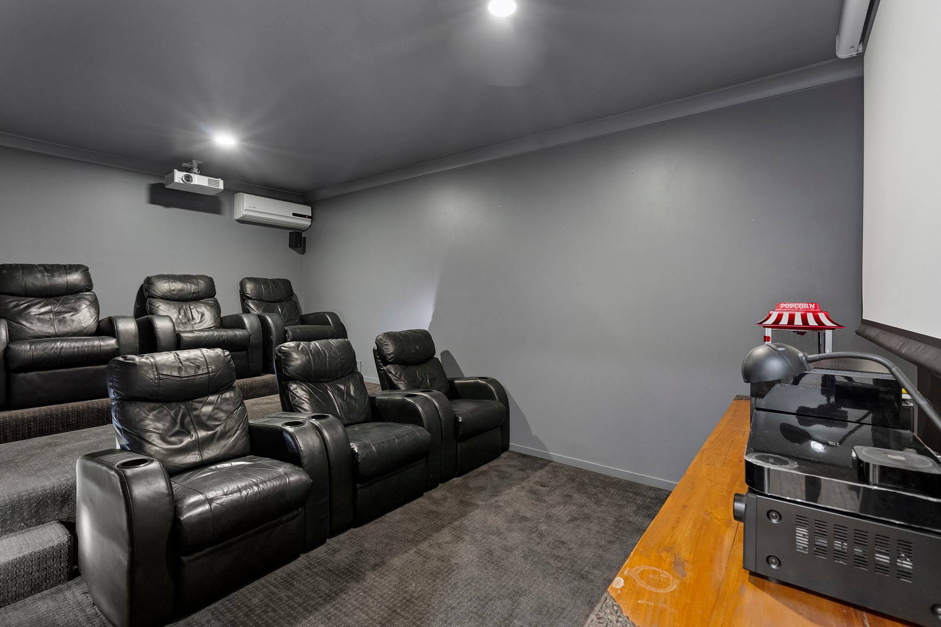 Hosting a collection of spaces for every occasion, you can make yourself at home in the formal lounge and dining room with a warming fireplace, enjoy drinks in the open-plan living and dining area featuring a new Vintec wine fridge, and watch movies in the cinema room, equipped with a projector and raised seating.