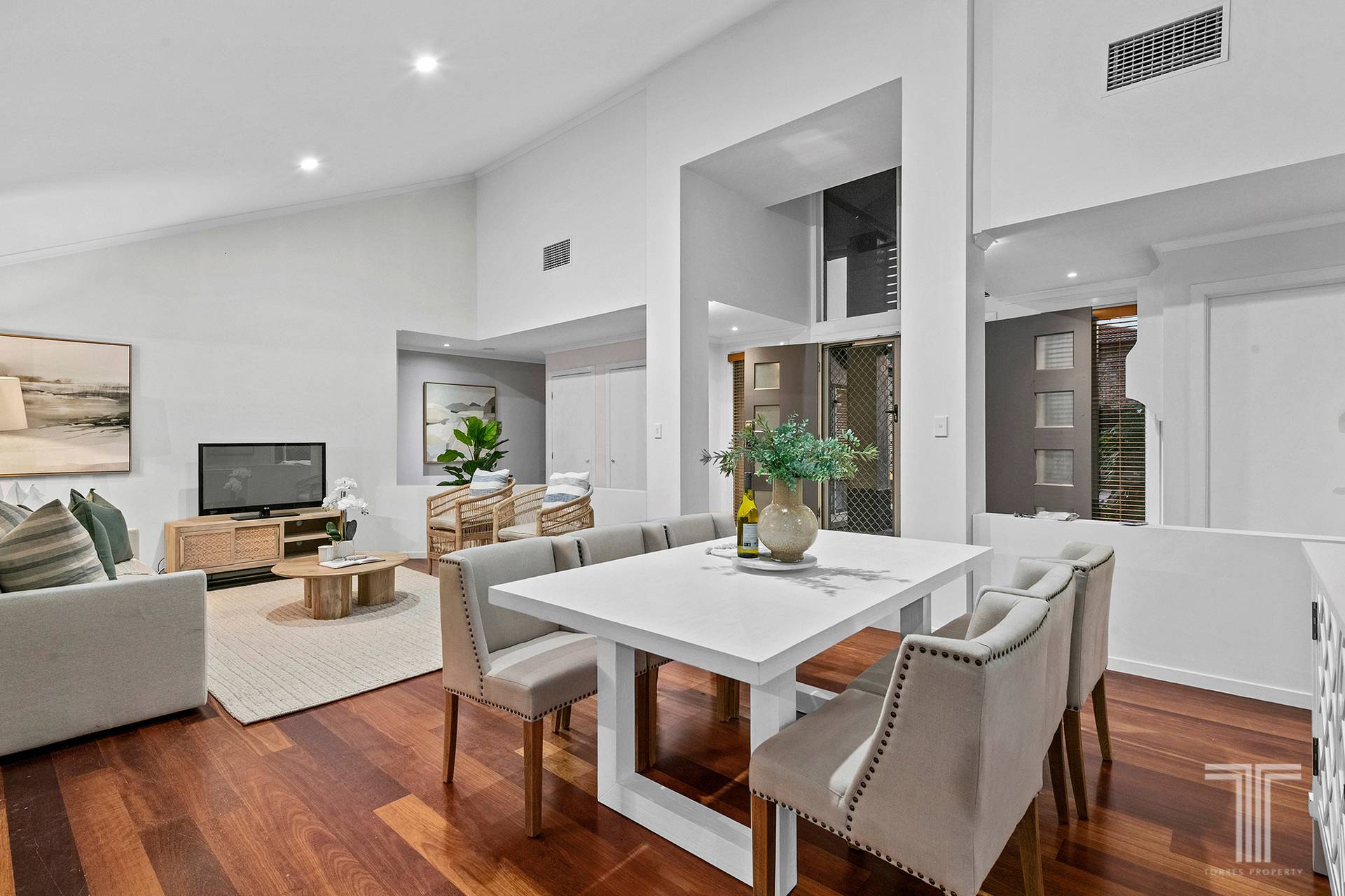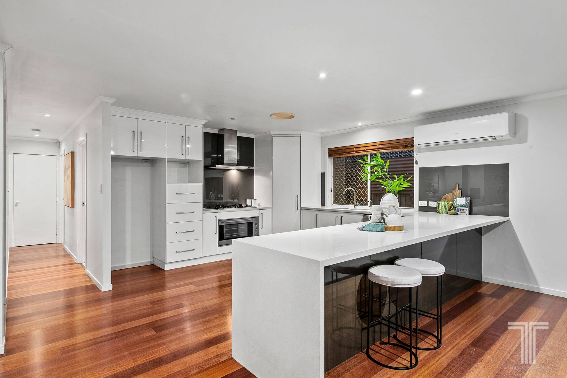 Located in the prestigious Fairways Estate, this low-set home presents a scenic escape within one of the most exclusive parts of Carindale. Maximising its private battle-axe block position at the end of a quiet cul-de-sac, the house boasts five bedrooms, open-plan living and resort-inspired poolside entertaining across its sprawling single-level layout.