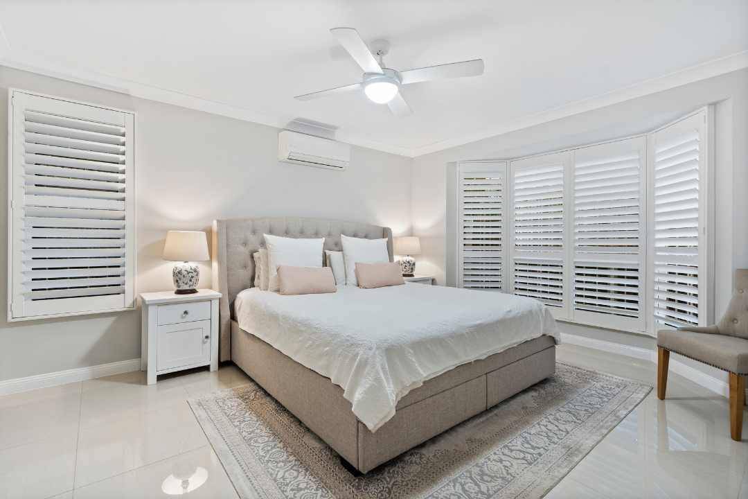 Air conditioning, glossy porcelain tiles, plush super soft carpet and ceiling fans throughout.