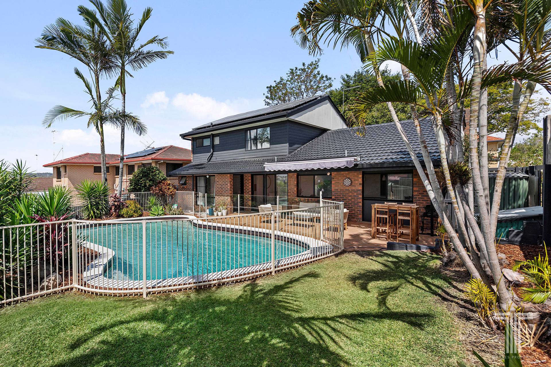 Step outside to the private alfresco patio, enjoying tranquil outlooks across Carindale and relaxing views over the backyard and pool. A summer oasis for parties, BBQs and family fun, you will love spending time here amongst the palm trees and greenery.