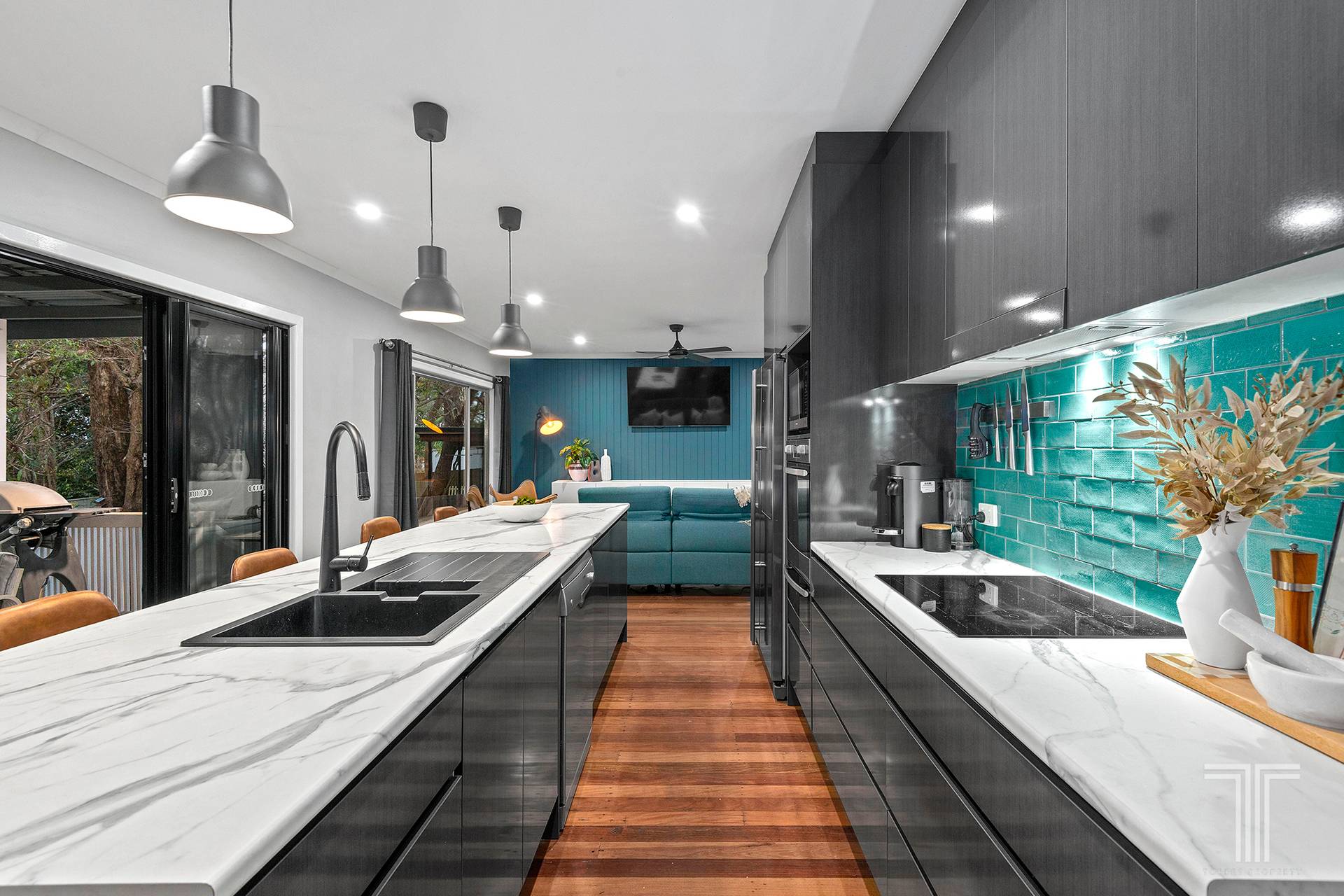 Infused with modern style, the residence exudes a bright, fresh feel with timber floors, ceiling fans and an open floor plan, maximising the natural light and leafy outlooks.