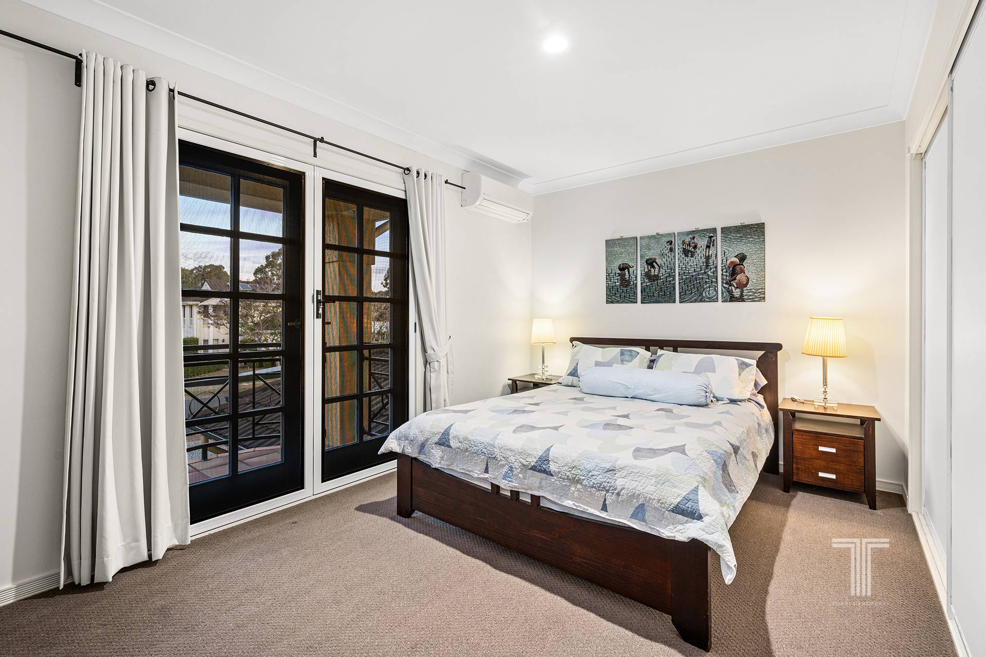 Ascend to the upper level, where privacy and serenity reign. Discover three spacious bedrooms, all fitted with built-in robes, a serene and airy retreat, and a sophisticated bathroom with a bathtub and shower. A balcony, accessible from two of the bedrooms, offers sweeping views.