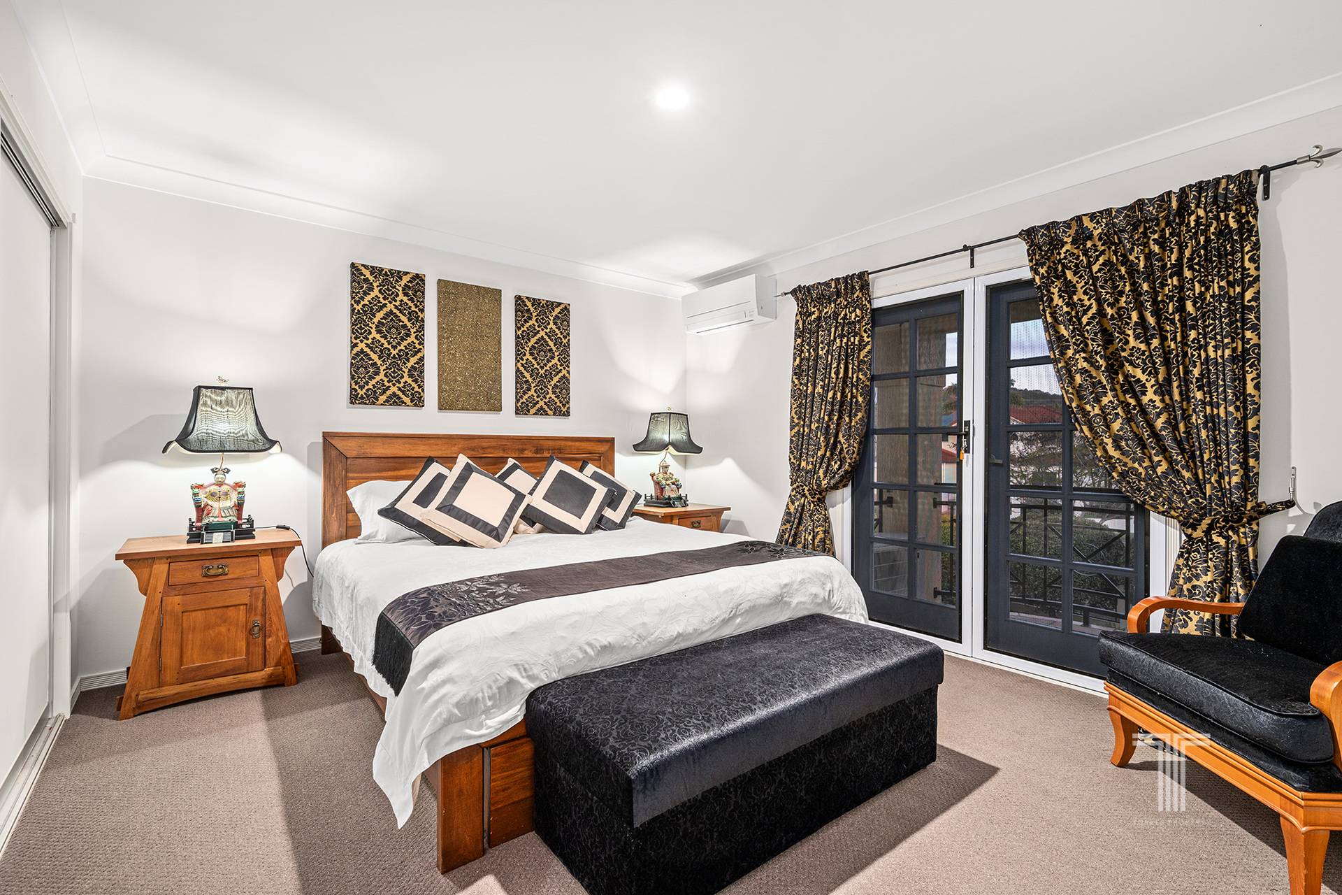 Communal living can be found in the expansive family room, which effortlessly integrates with the meals area and kitchen. Every meal becomes a delightful experience as you sit beside a gorgeous bay window, which bathes the area in sunlight and captures views of the gardens. For those culinary indulgences, the gourmet kitchen becomes your canvas, showcasing built-in storage, top-tier appliances, splashbacks, abundant preparation space, and a generous walk-in pantry.