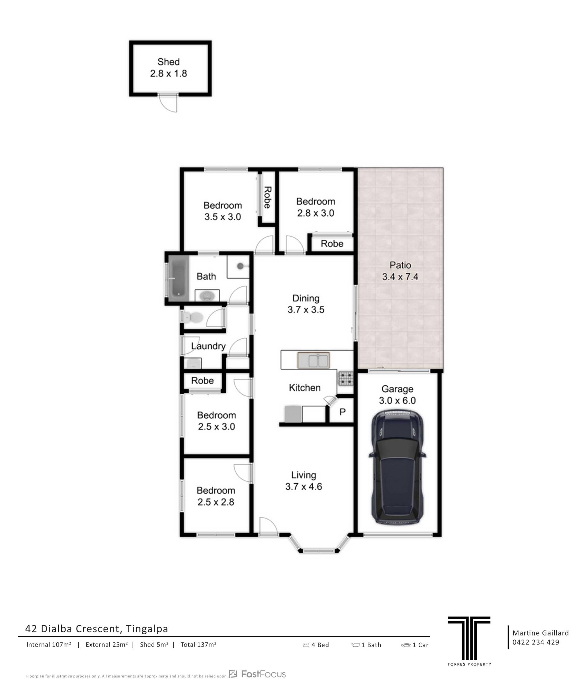 single lock up garage and a garden shed provides extra storage in the back yard.
