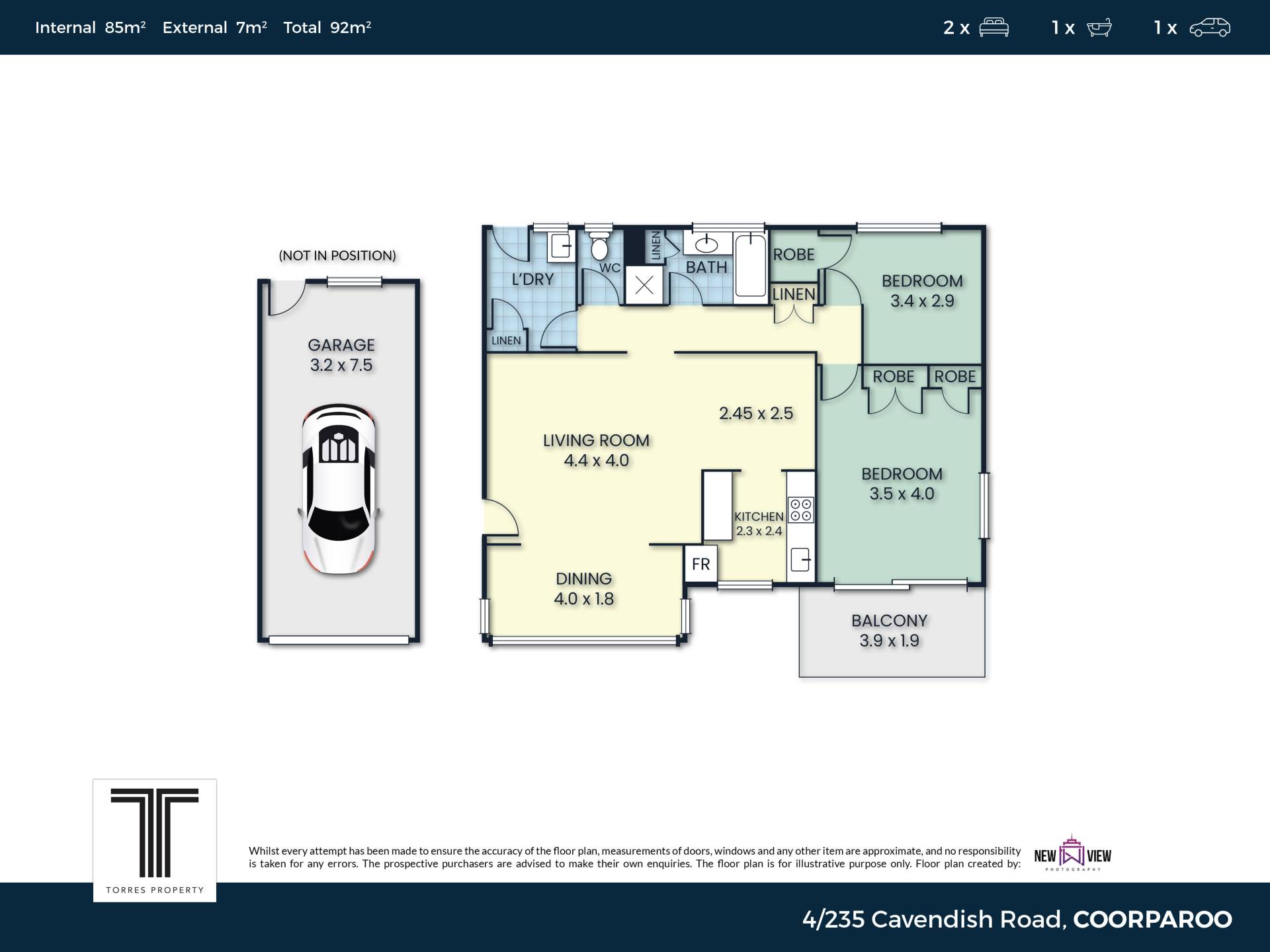 Disclaimer: Whilst every care is taken in the preparation of the information contained in this marketing, Torres Property will not be held liable for any errors in typing or information. All interested parties should rely upon their own enquiries in order to determine whether or not this information is in fact accurate.