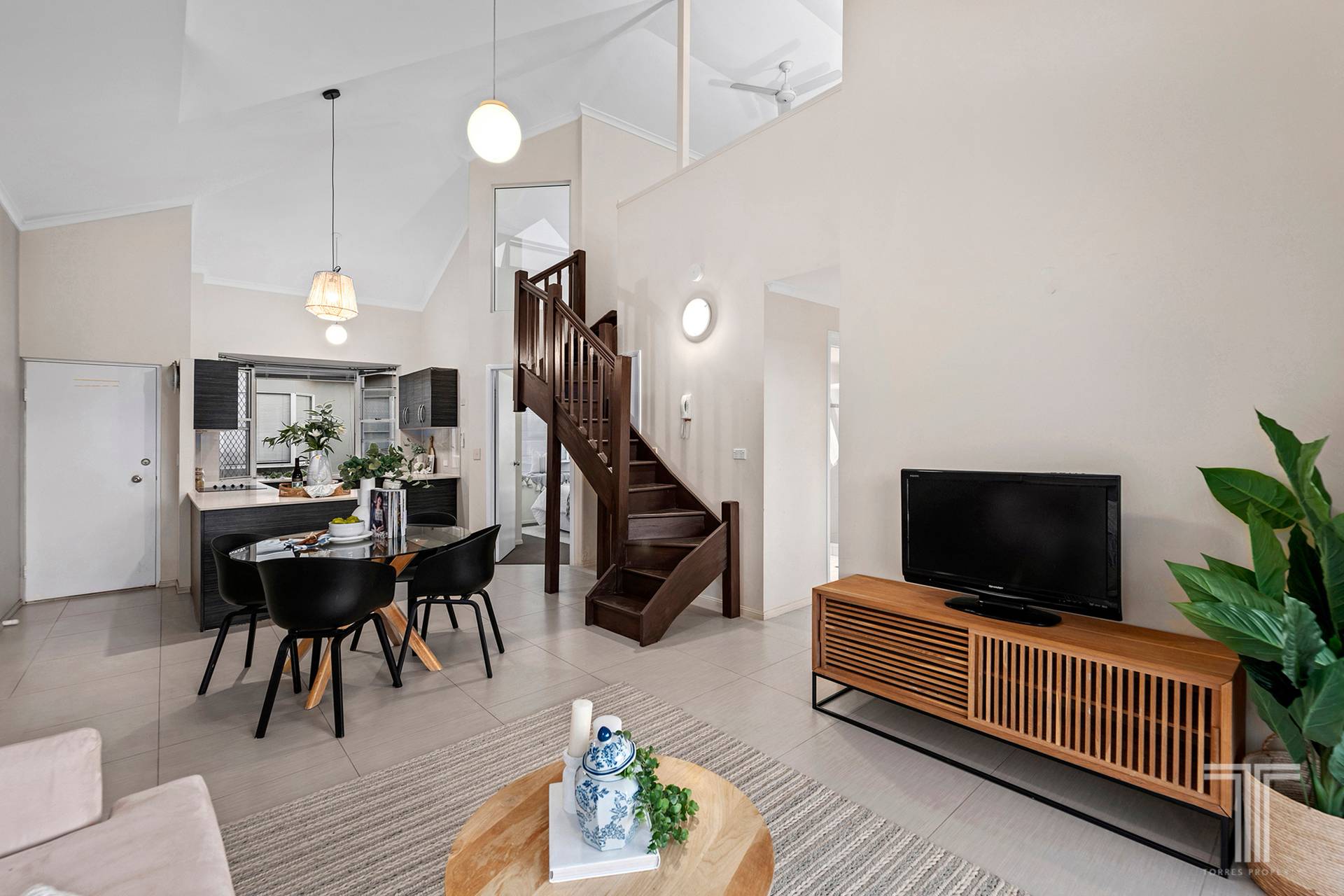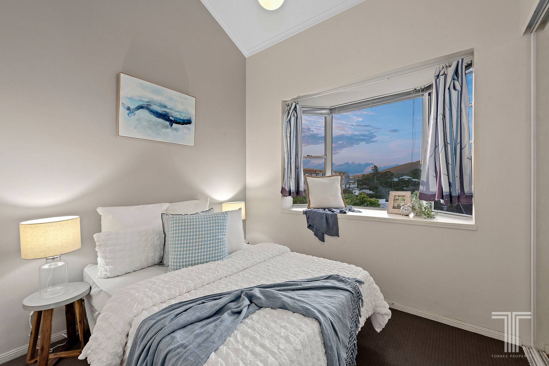 Stepping inside, the generously sized and air-conditioned living and dining area seamlessly connects to the elevated balcony, forming an inspired alfresco retreat delighting in stellar sunsets and breathtaking mountain views that will leave you in awe. Accommodating indoor and outdoor dining amongst these enchanting outlooks and breezes, the kitchen is well-designed with stone benchtops, a stainless steel oven and a dishwasher.