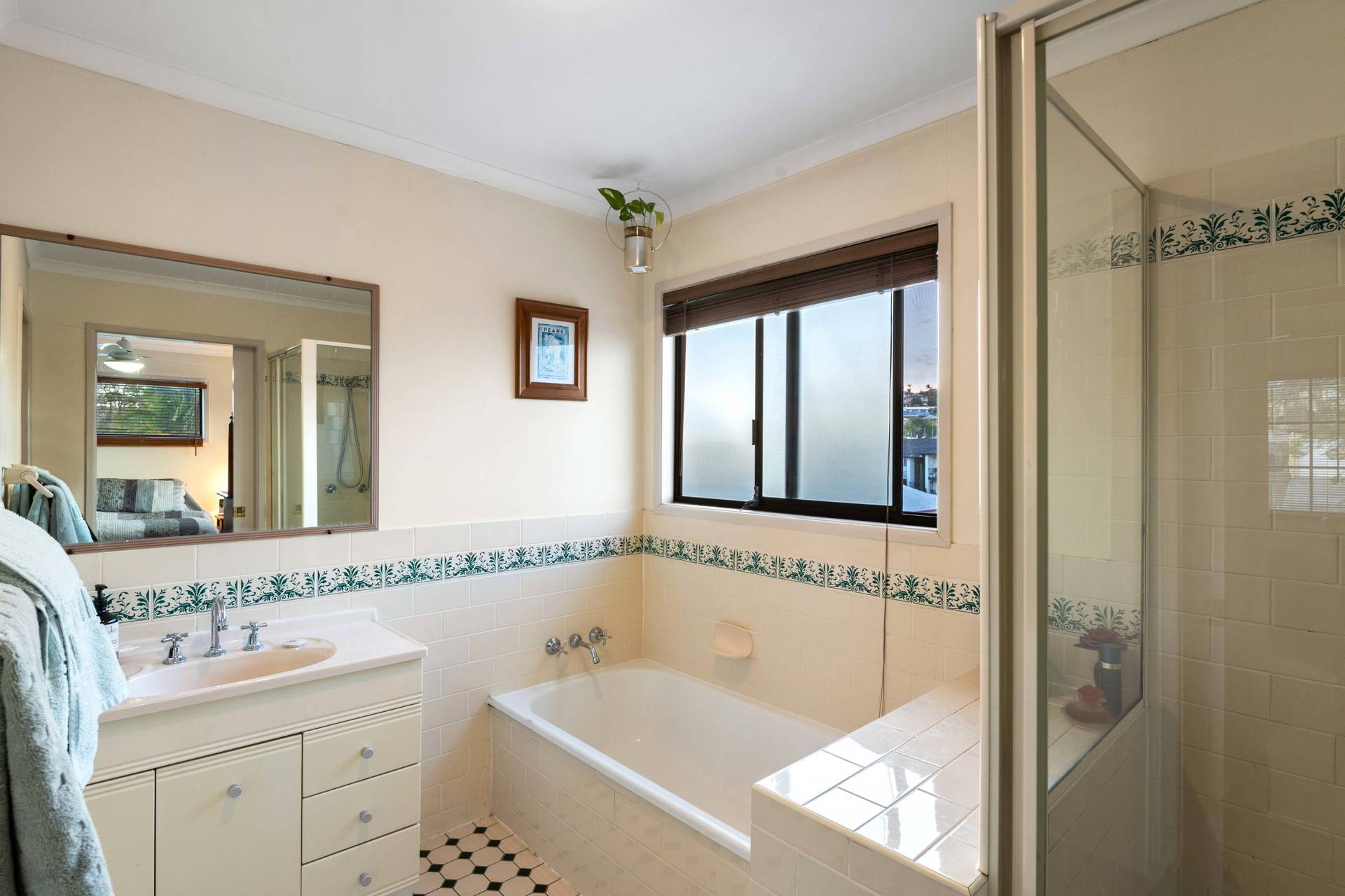 Four bedrooms are serviced by two bathrooms and a laundry. One bedroom is downstairs, and three reside upstairs, all delighting in lovely leafy views.