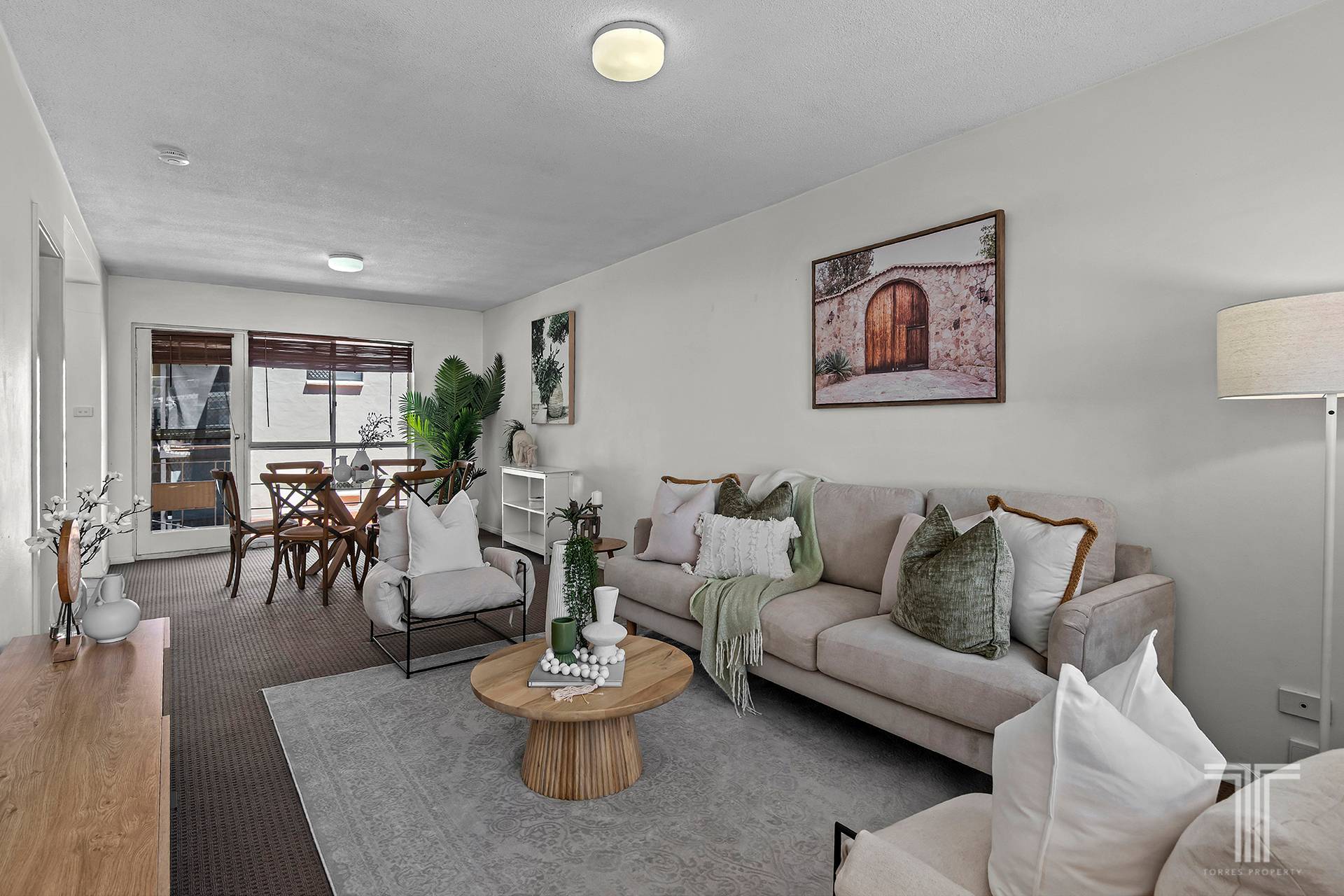 Both bedrooms feature built-in wardrobes and plush carpets, providing a cozy retreat within this inner-city sanctuary. A balcony, shared with one of the bedrooms, extends the living space outdoors, providing a perfect spot to unwind and enjoy the surroundings.
