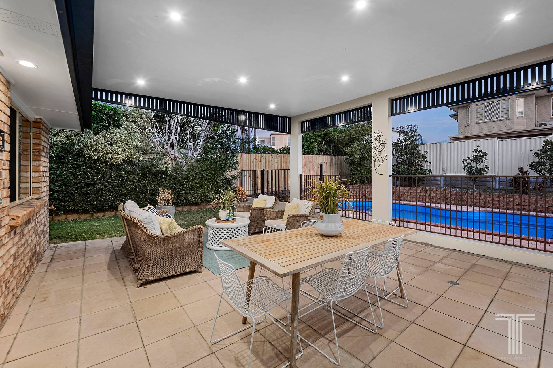 When it is time to unwind and enjoy entertaining outdoors, the alfresco terrace presents the ideal setting for gatherings with family and friends as you soak up the sunshine and peaceful ambience by the glistening pool and level backyard.