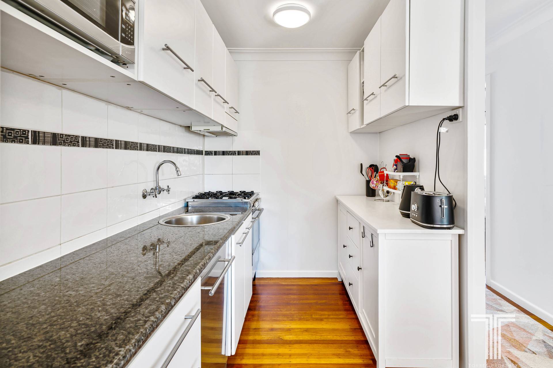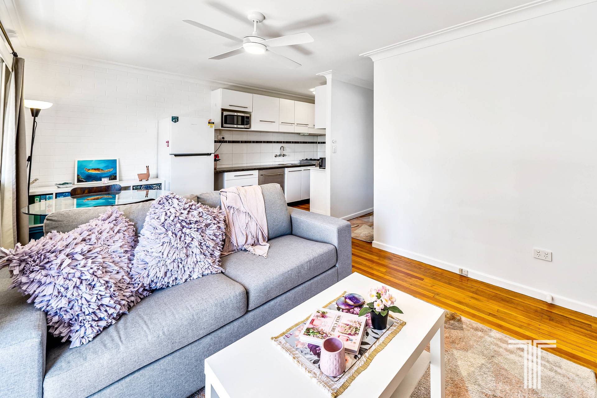 Freshly painted and featuring a functional layout, the unit opens to a living and dining area with polished timber floors, air-conditioning and access to the front balcony. The well-appointed kitchen has good storage and stainless steel appliances, including a dishwasher and gas cooktop.