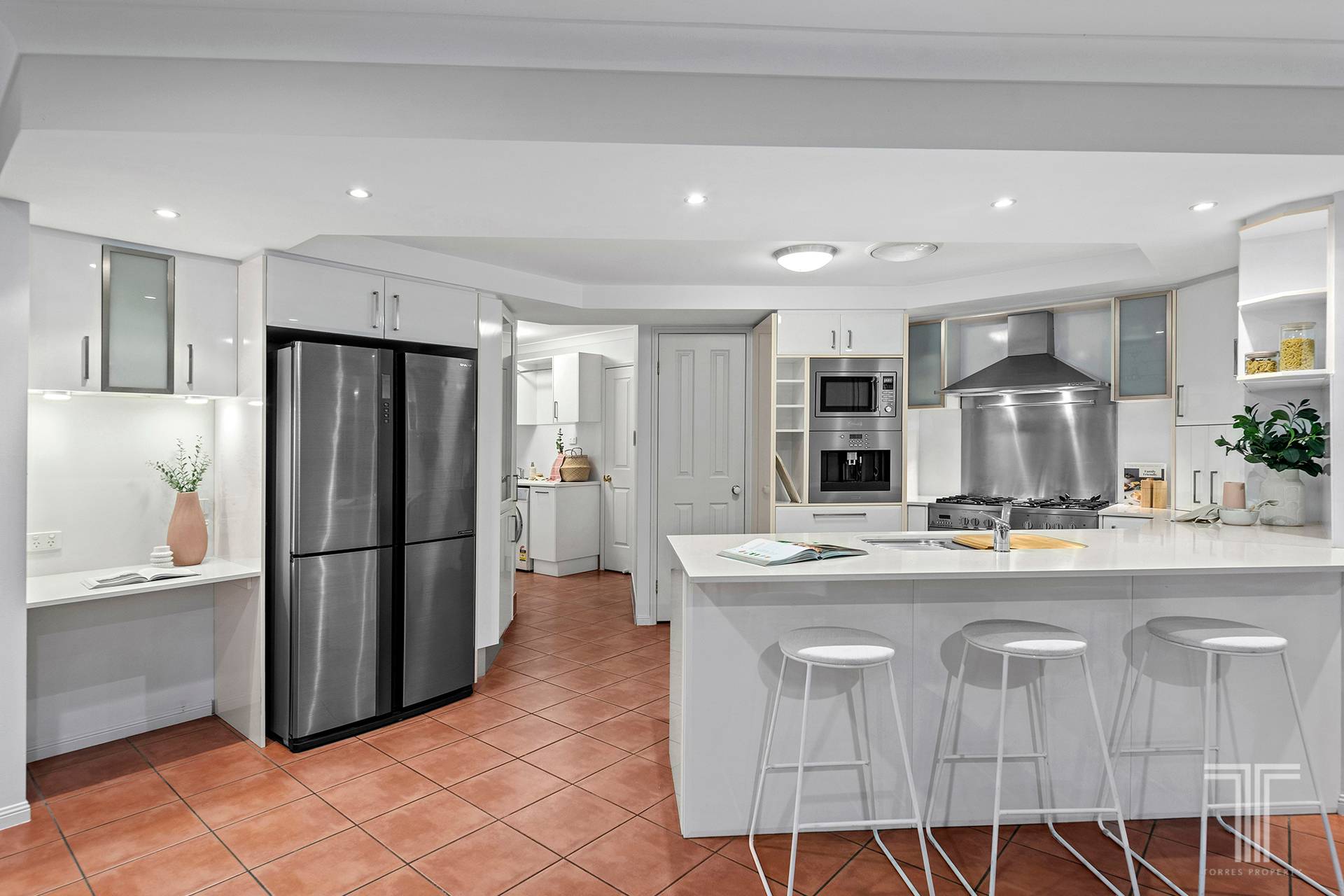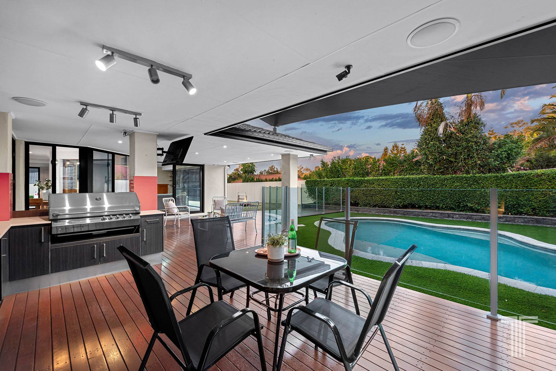 You can continue the fun and cooking outdoors on the private poolside patio, featuring an alfresco kitchen with a built-in BBQ and scenic views across the glistening pool, lush lawns and manicured hedges. An oasis of peace and calm, you will adore hosting family and friends here for festive parties and watching kids run, swim and play all summer long.