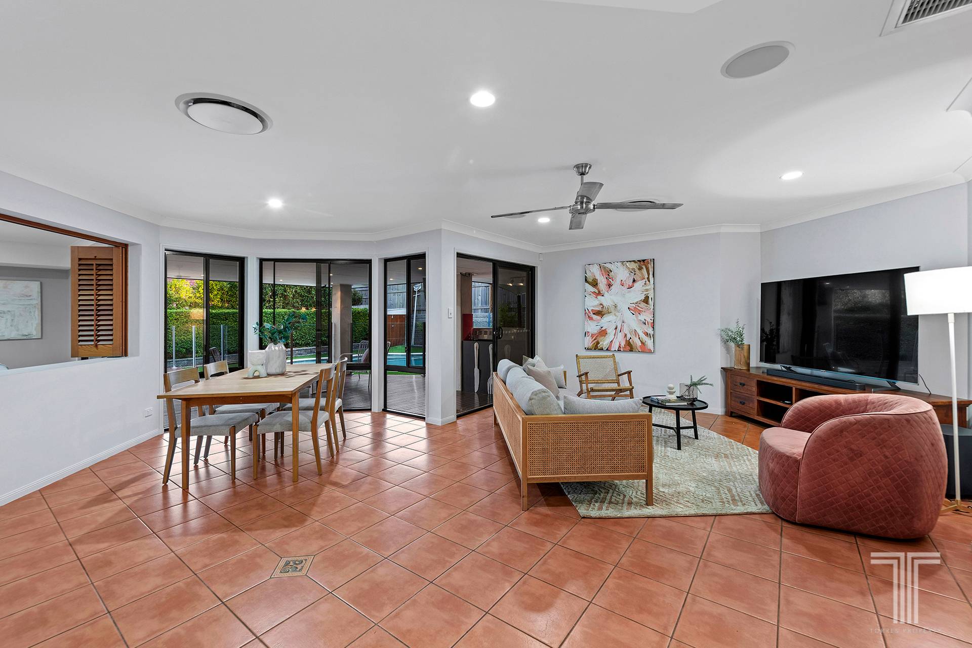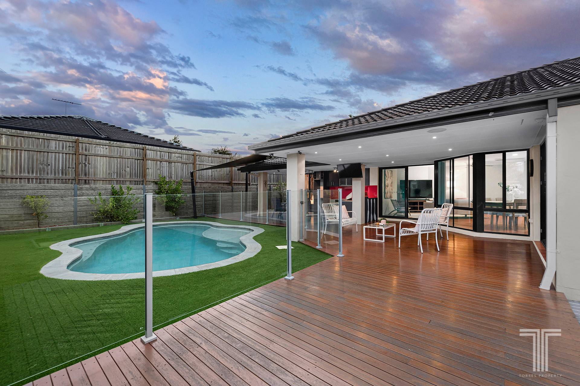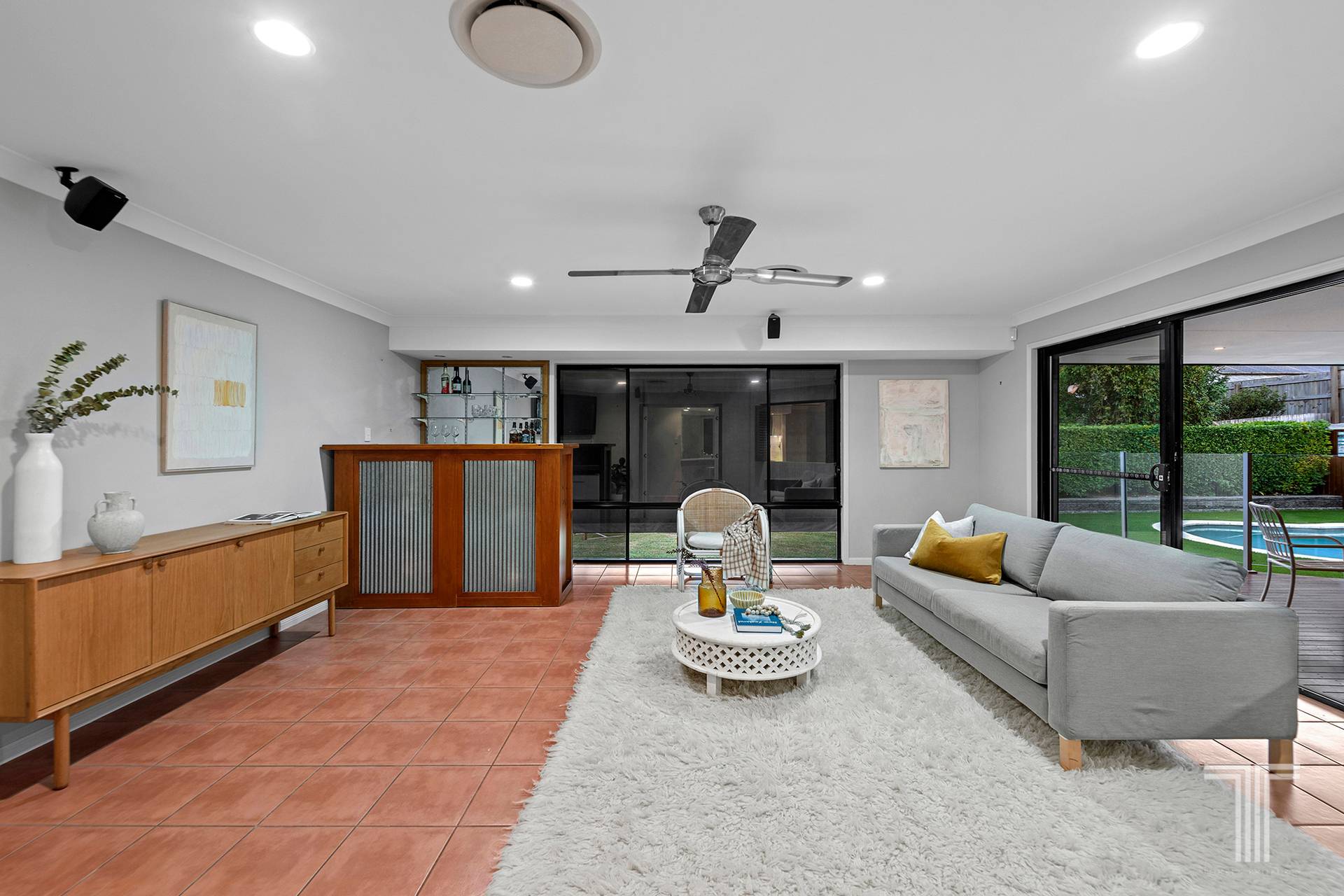 With multiple living zones inside and out, you can always find the perfect place to relax and entertain. The spacious family room is equipped with a built-in bar, and the open-plan living and dining area surrounds the superb kitchen, featuring large stone benchtops, stainless steel appliances and excellent cabinetry offering plenty of storage.