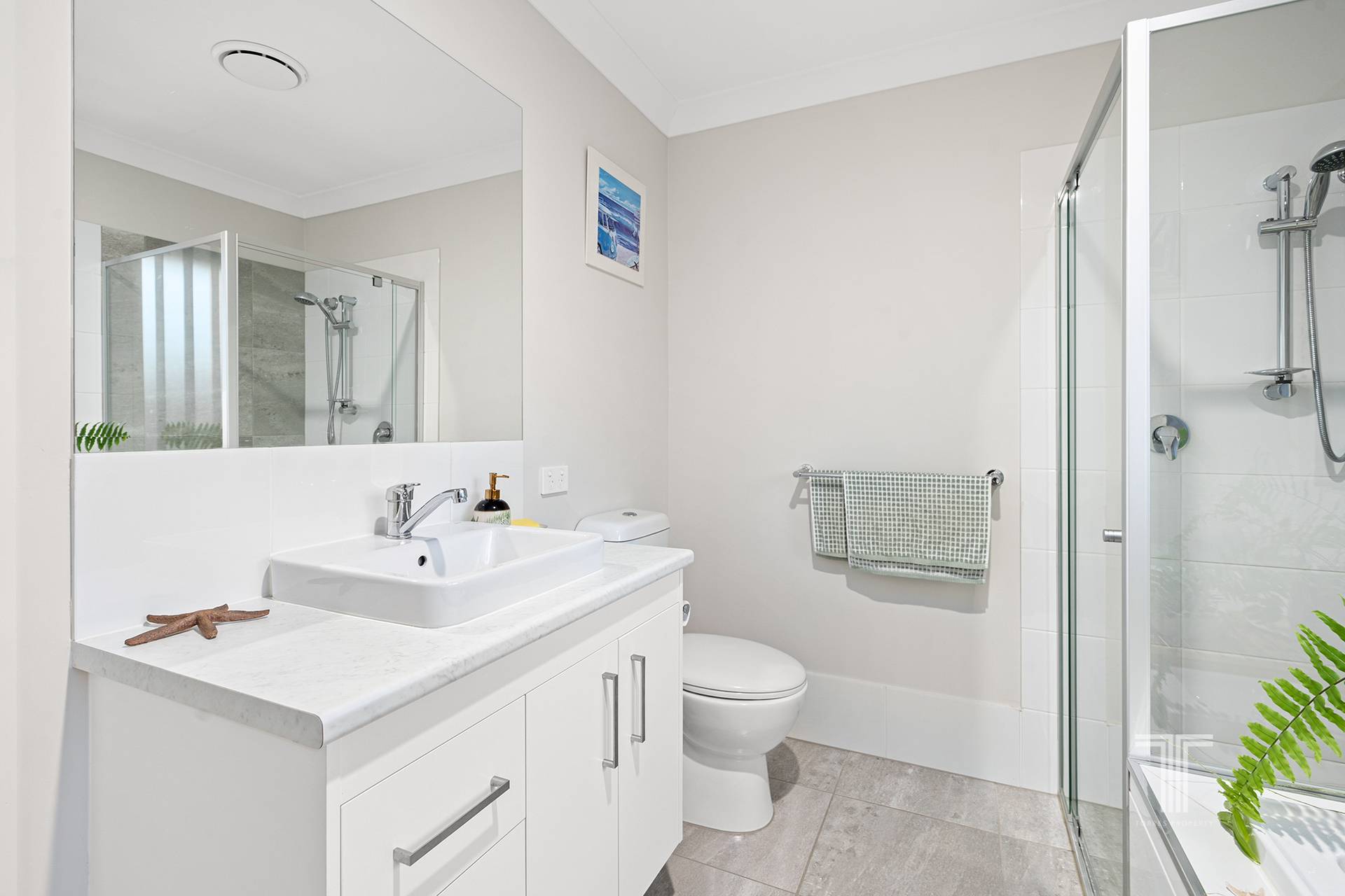Four large bedrooms feature built-in robes and high-quality hybrid-flooring, including a master with a walk-in robe and ensuite. A second bathroom with a bathtub services the rest of the home, and the property boasts a double garage, laundry, and indoor and outdoor clotheslines.