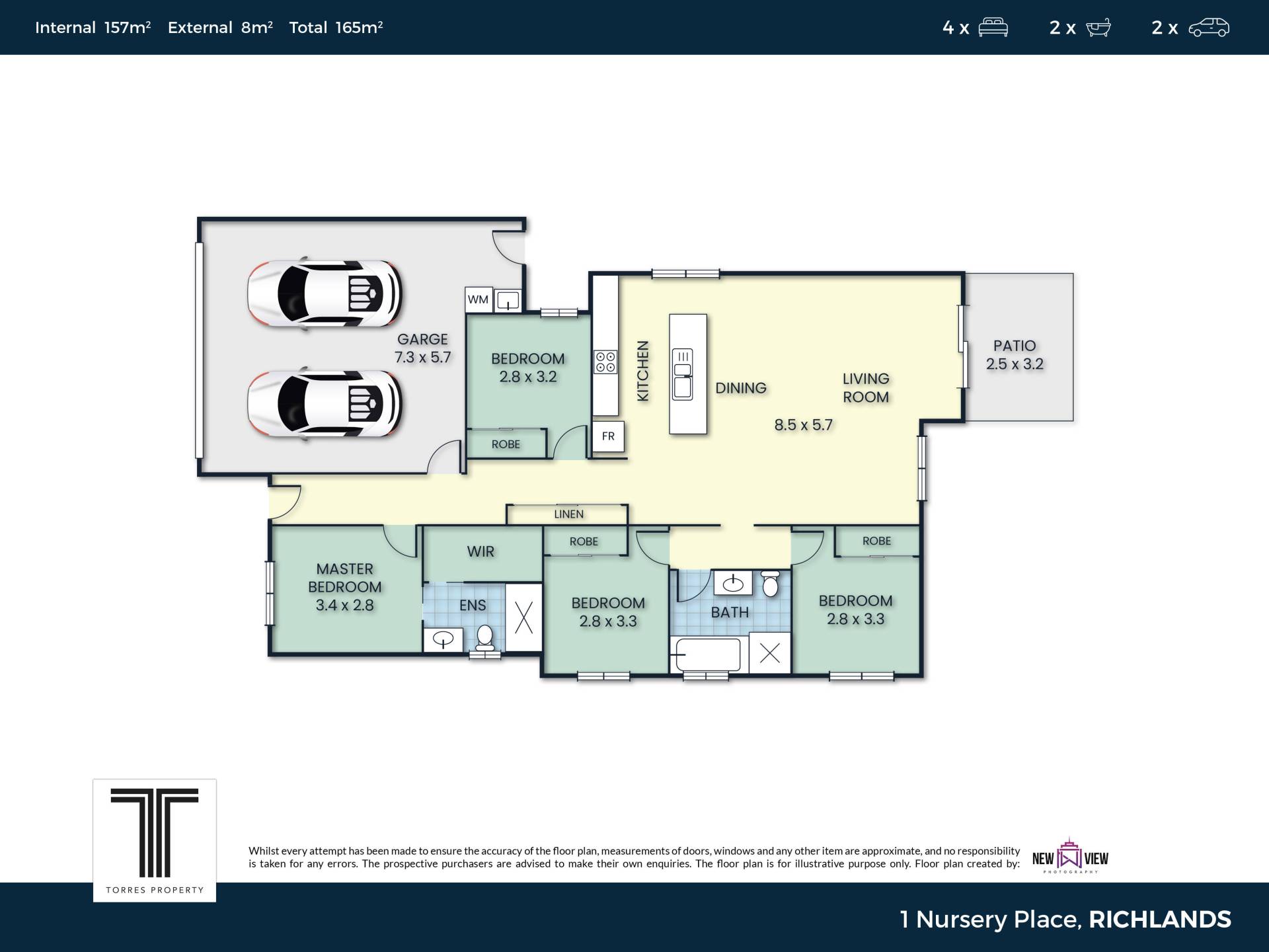 Disclaimer: Whilst every care is taken in the preparation of the information contained in this marketing, Torres Property will not be held liable for any errors in typing or information. All interested parties should rely upon their own enquiries in order to determine whether or not this information is in fact accurate.