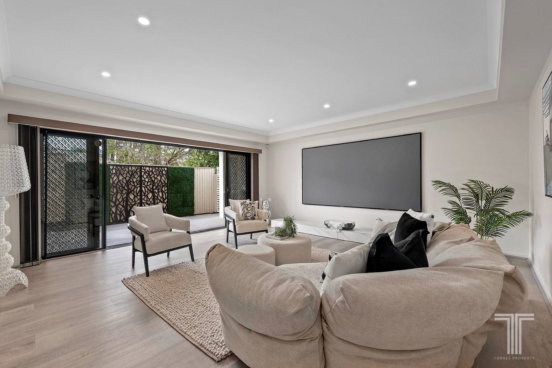 The biggest townhouse in the complex, with a private driveway and a sprawling 324sqm design, the layout caters flawlessly to large families seeking separation, practicality and exquisite entertaining with four bedrooms, three bathrooms, multiple outdoor spaces, and living zones on each level.