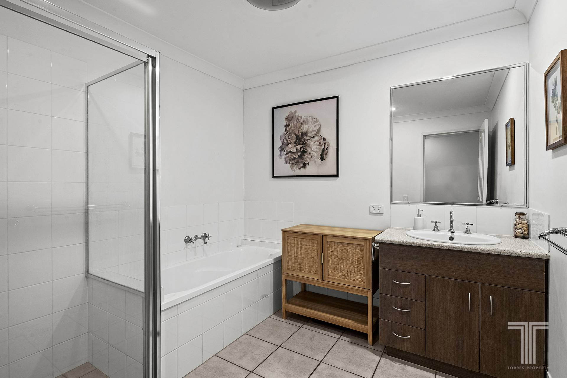 The upper level houses two bathrooms and three bedrooms, all with built-in robes. The master includes an ensuite and an elevated balcony overlooking the gardens below. A quiet estate, Symphony features on-site management, an in-ground pool and a communal BBQ area for residents and guests.