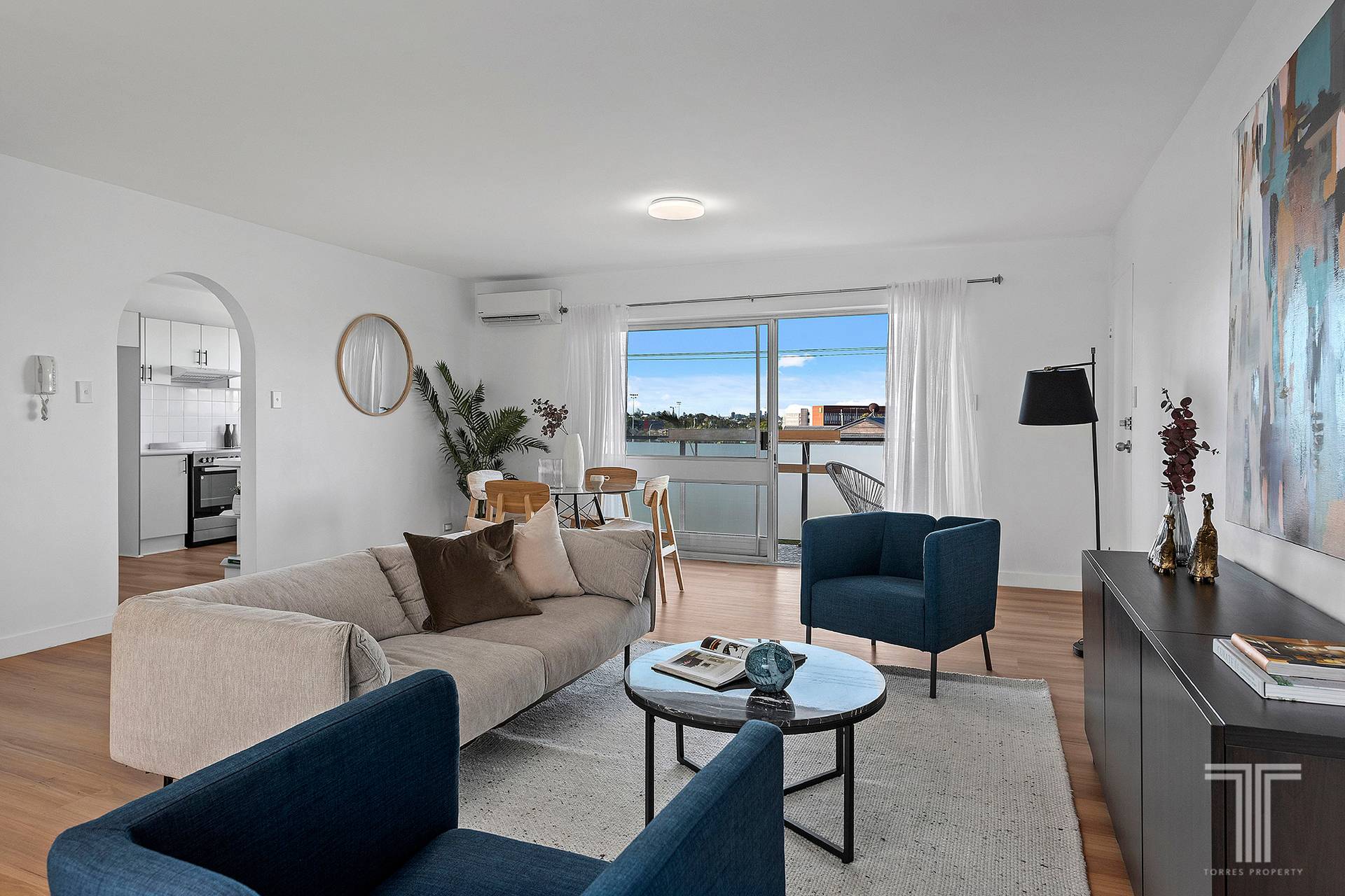 Creating space, privacy and peaceful living, the lounge/dining area is open-plan, air-conditioned and extends to a direct north-facing balcony, where you can sit and sip drinks as you take in the scenic views across the suburb. A kitchen, two bedrooms, a central bathroom, internal laundry and a lock-up garage continue the functional layout.