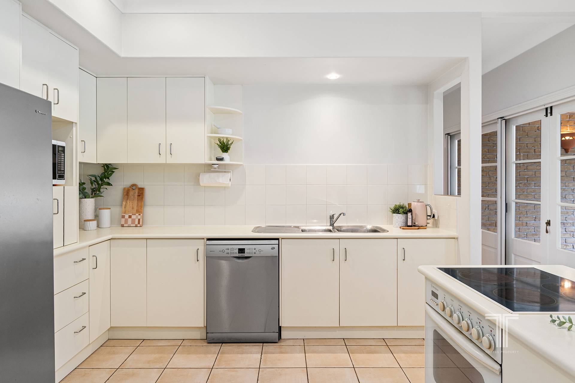 The heart of this home lies in its well-appointed kitchen, a culinary haven featuring a Ceran electric stove top, a Westinghouse oven on the island bench, a Bosch dishwasher, and ample storage space. Skylights in the kitchen and living areas infuse the spaces with natural light, creating a warm and inviting atmosphere for both cooking and relaxation.