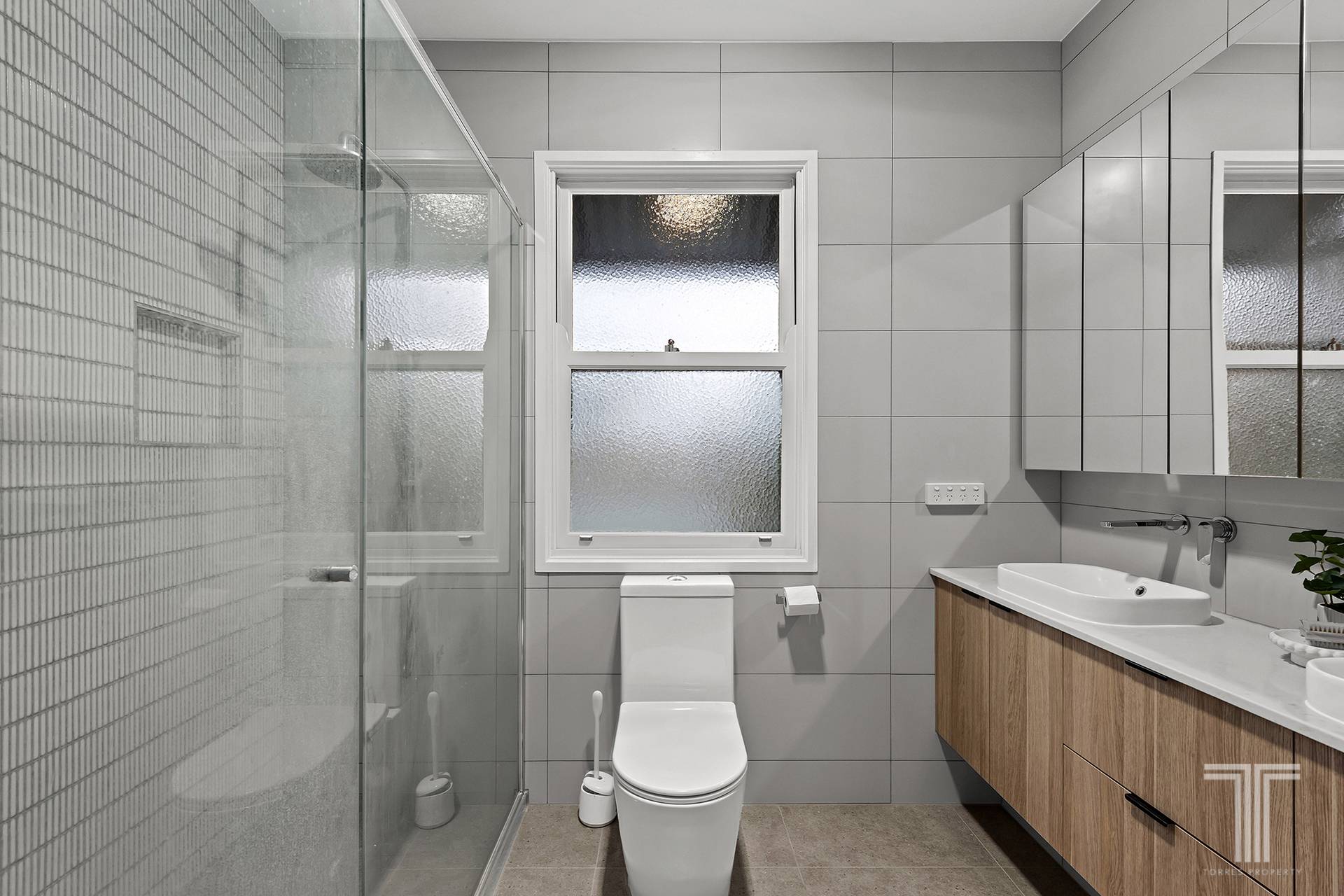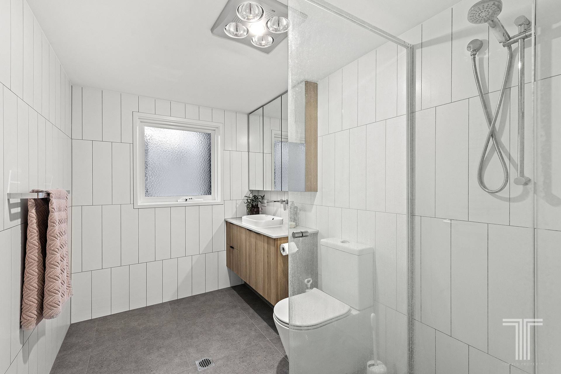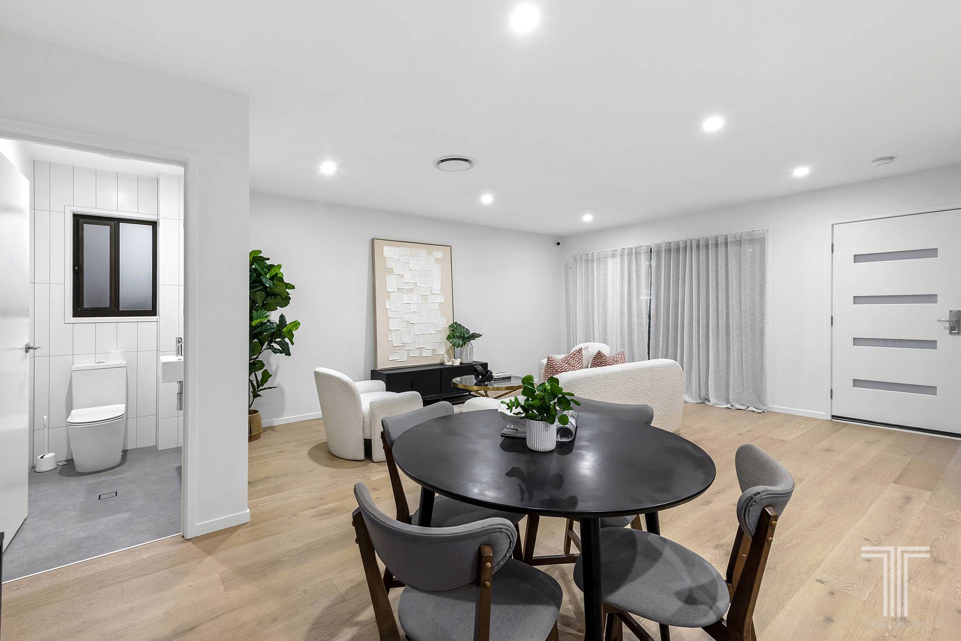 The upper floor caters seamlessly to working and unwinding with a study nook and an elevated deck overlooking the leafy park. Four bedrooms are also featured on this floor, serviced by three luxurious bathrooms with stonetop vanities and floor-to-ceiling tiles. Three of the bedrooms have spacious walk-in robes, and two boast ensuites, including the master. A downstairs powder room and double garage with a laundry finalise the design, and the home features ducted air-conditioning, ceiling fans and downlights.