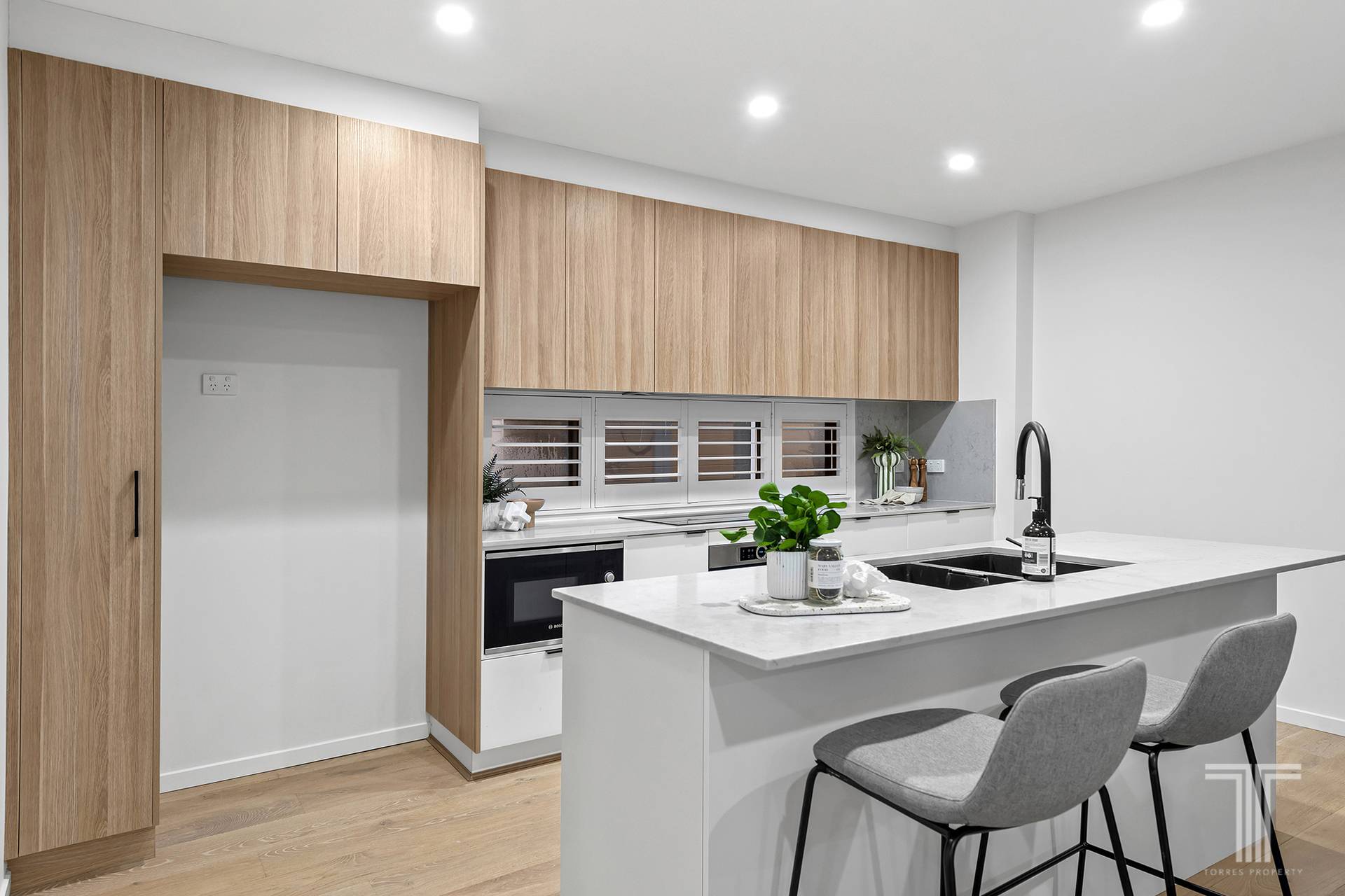 A marvellous display of contemporary style and thoughtful composition, the home is infused with rich texture, warmth and elegance with a beautiful array of feature floorboards, timber stairs, stone benchtops and sheer curtains.