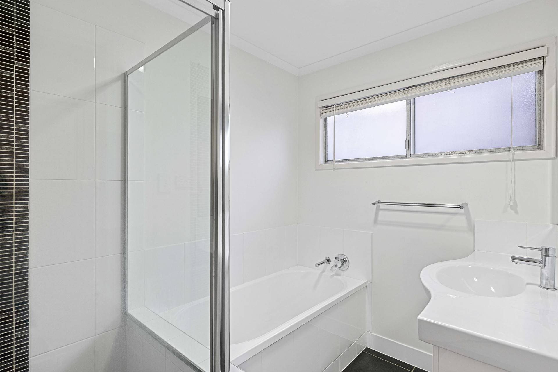 Three air-conditioned bedrooms with built-in robes finalise the upper level, serviced by a modern bathroom with a bathtub, shower and separate toilet.