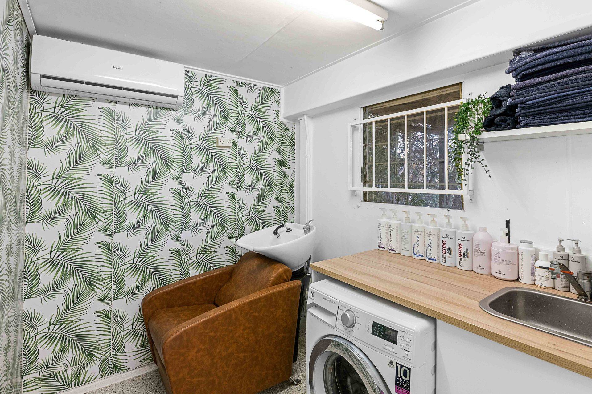 A utility room and laundry downstairs create family flexibility. Currently set up as a hair salon, this space is ideal as a rumpus, workspace or home business. There is also a sizeable lock-up garage to accommodate three cars or a home gym.