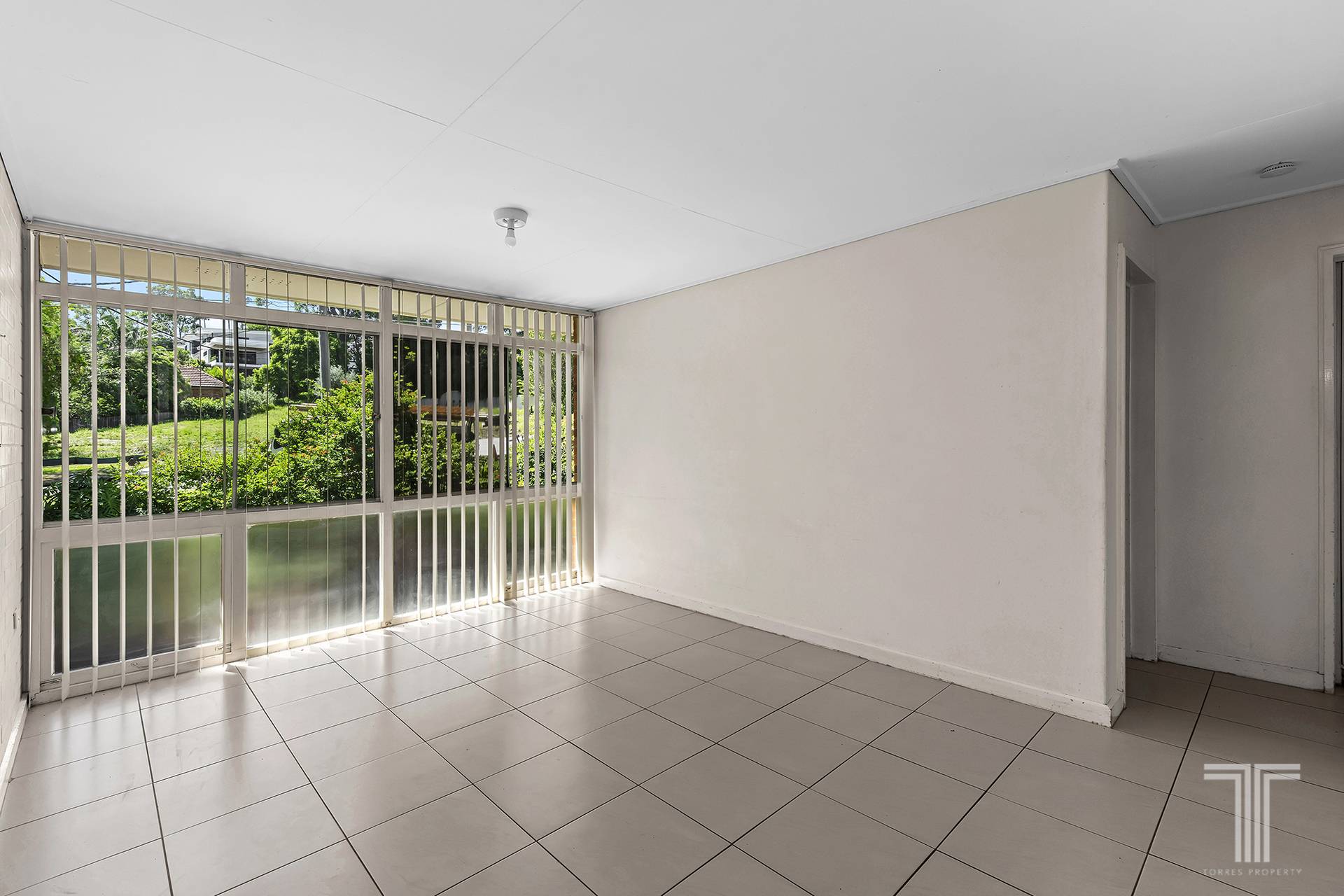 Positioned on a grassy block, the complex features 2x two-bed, one-bath, two-car units with balconies, storage and city glimpses through the trees.