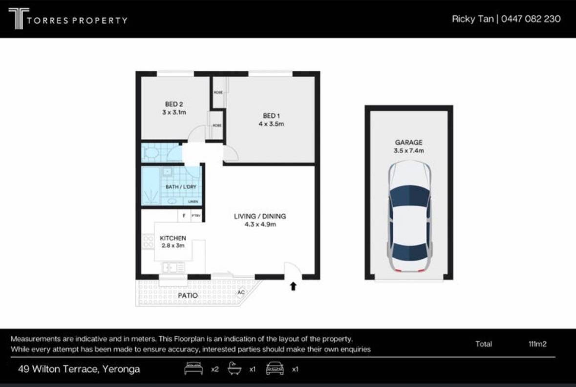 2 Beds 1 Baths 1 Cars 110 m2