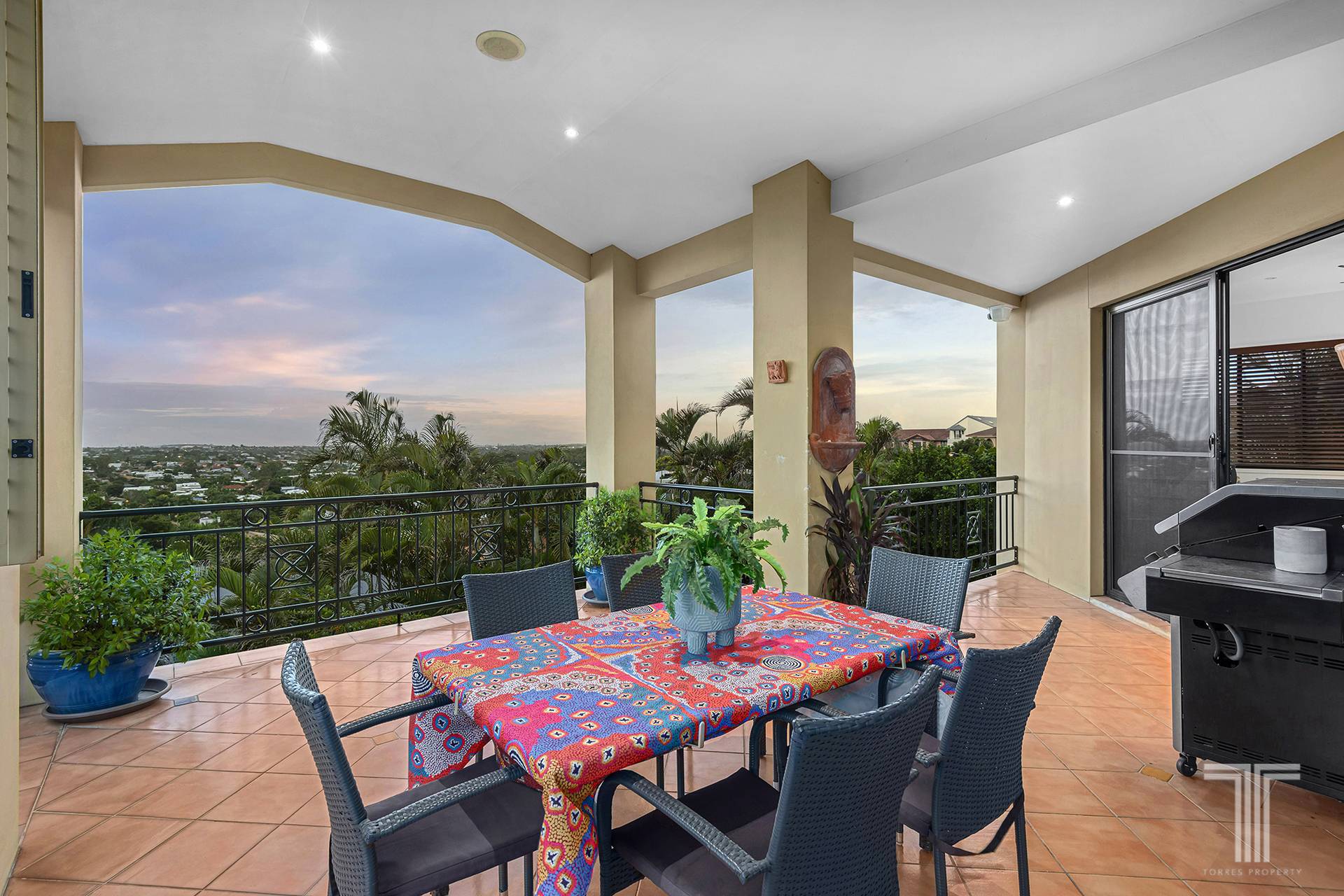 Elevated at one of the highest points of Carina Heights with unparalleled outlooks and Whites Hill Reserve steps from your door, this large family home on a north-facing 968sqm presents top-of-the-world living in an idyllic position.