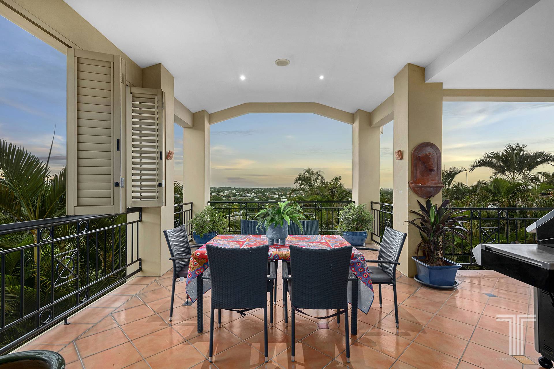 Bask in the blissful backdrop from the entertainer's balcony, where the city, suburbs and trees combine to form one of Brisbane's best outlooks. Hosting and dining can continue downstairs, with an alfresco patio and a swimming pool, perfect for relaxing afternoons.