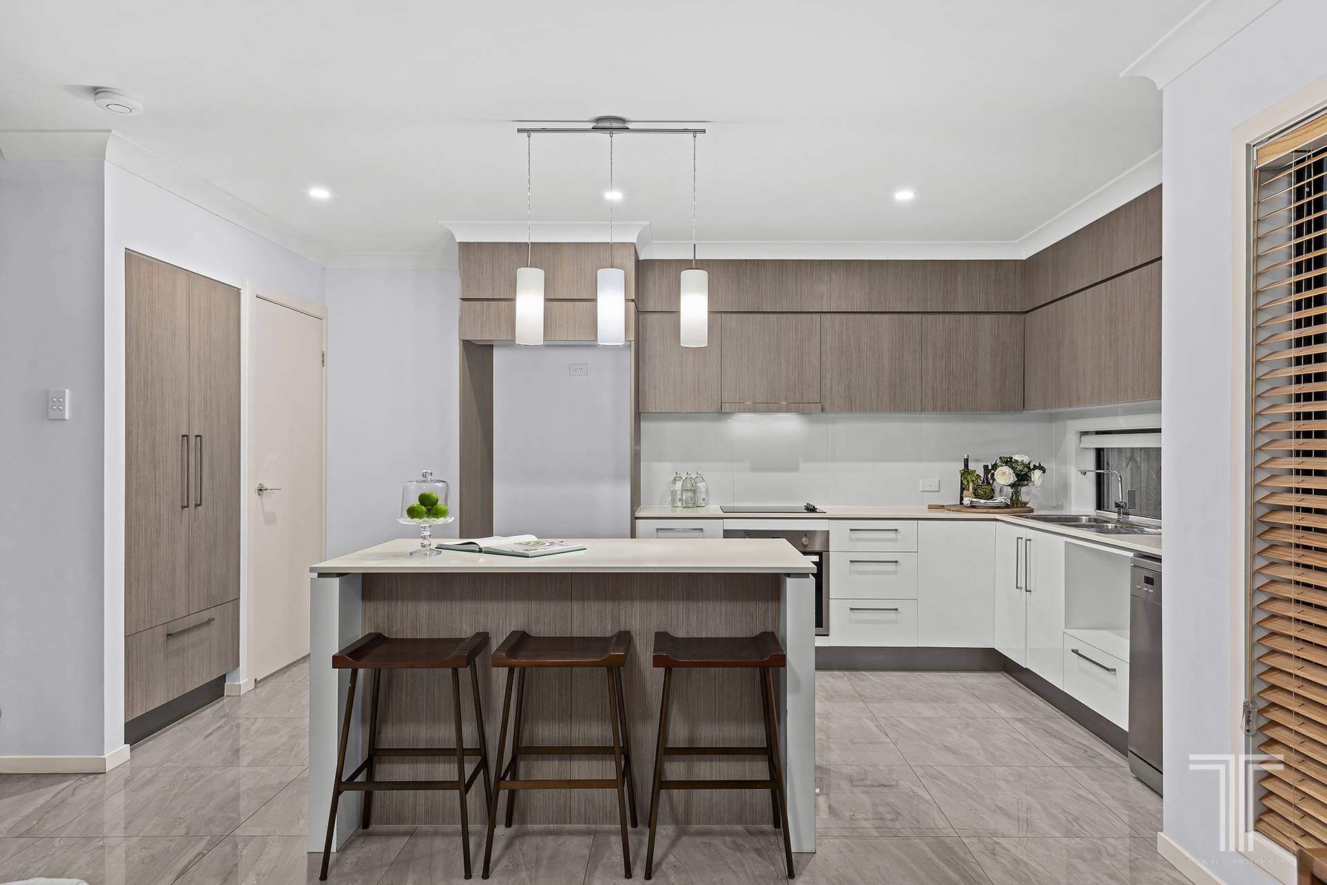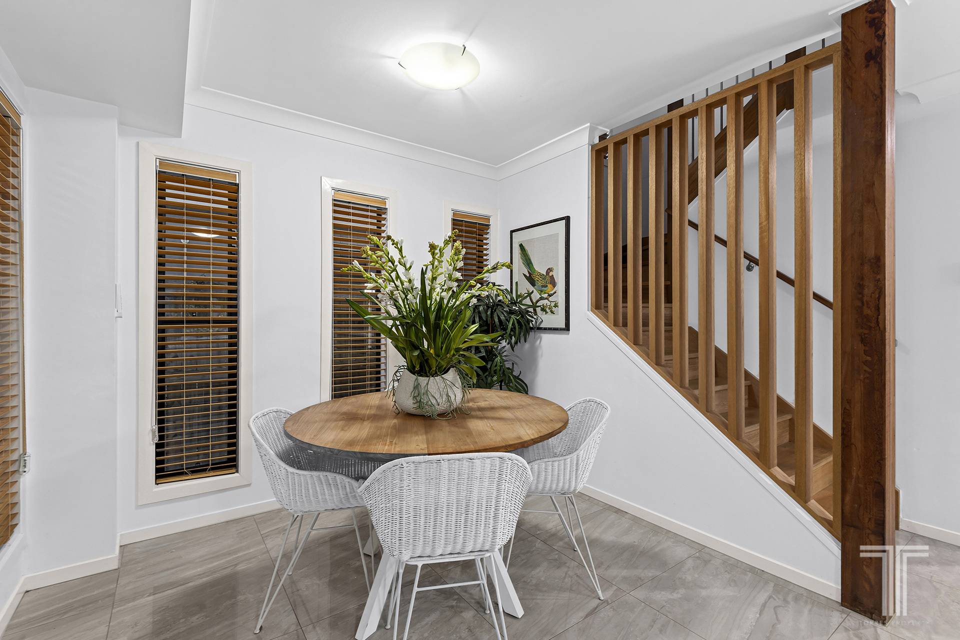 The ground floor generates a conscious connection, with an air-conditioned living and dining area flowing to the peaceful alfresco patio and sublime chef's kitchen, which unveils an island bench, breakfast bar and extensive storage.