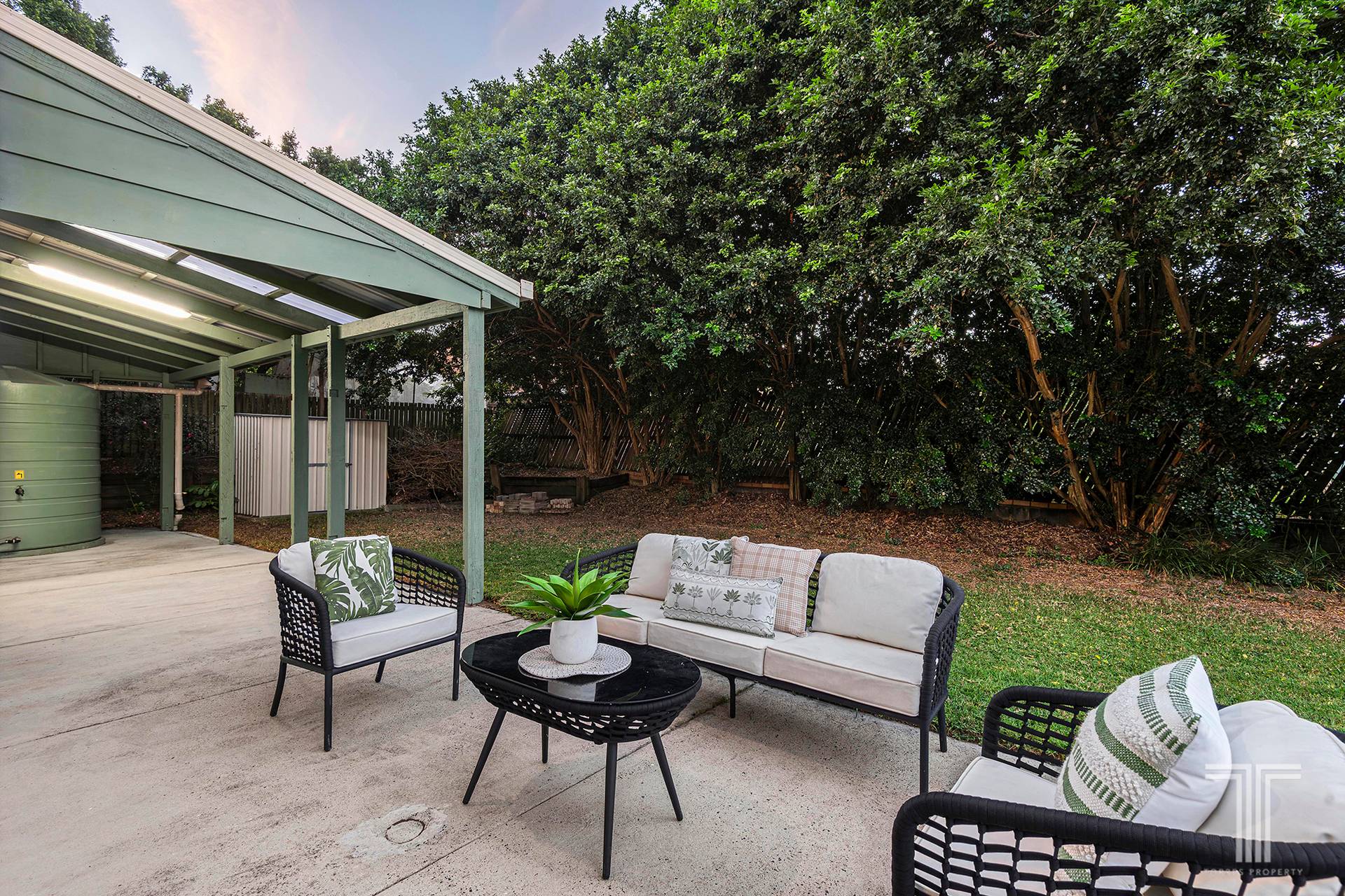 - Garden shed and a water tank
