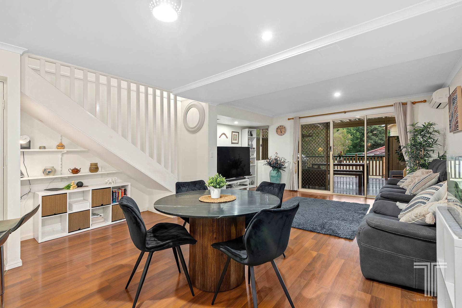 Forming a peaceful, open retreat, the air-conditioned living and dining area features a study nook and flows to the large timber deck, where you can enjoy private entertaining and outdoor living amongst the leafy outlooks.