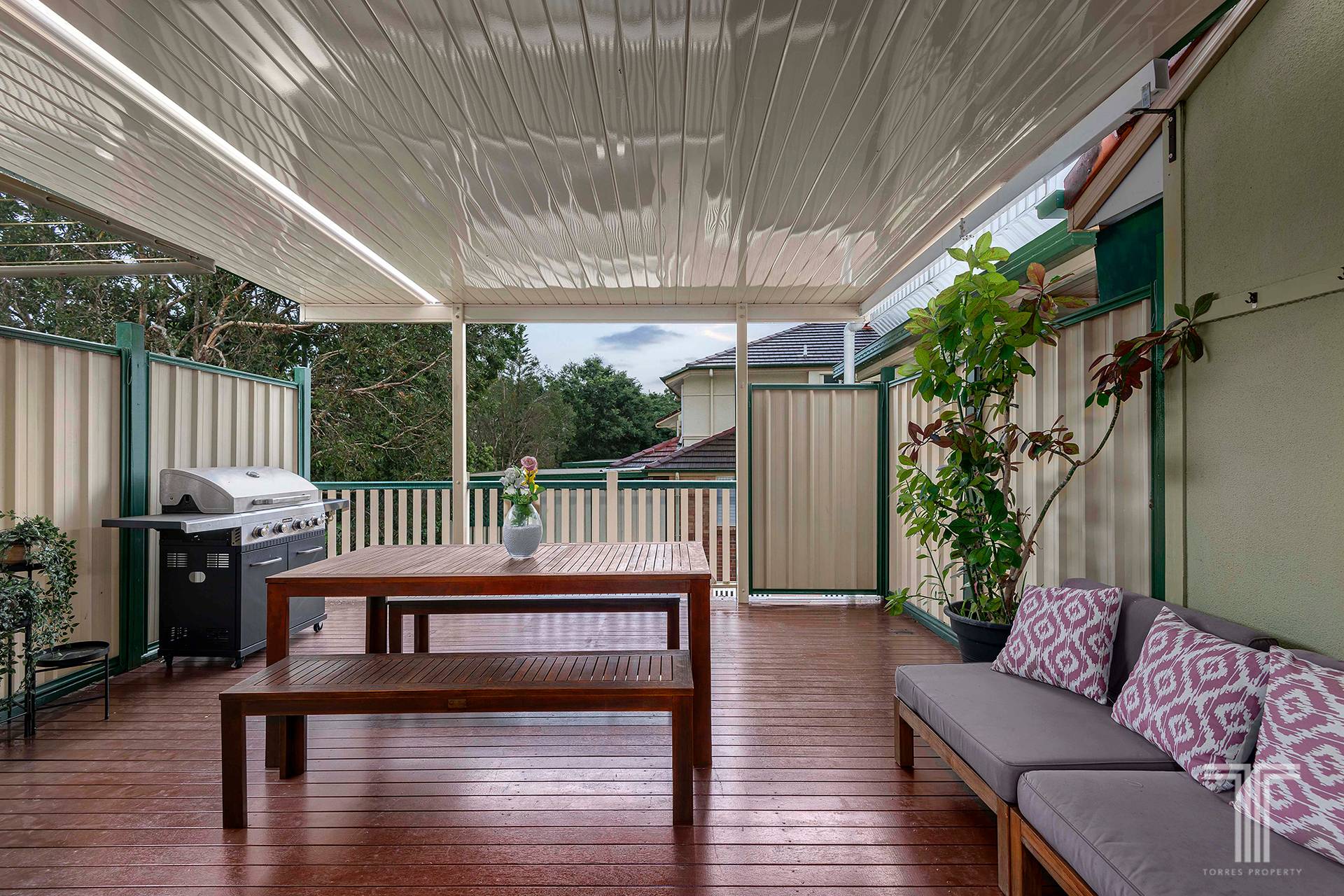 Composed over two levels with timber floors and three carpeted bedrooms, the residence invites beautiful airflow and breezes across the indoor/outdoor design.