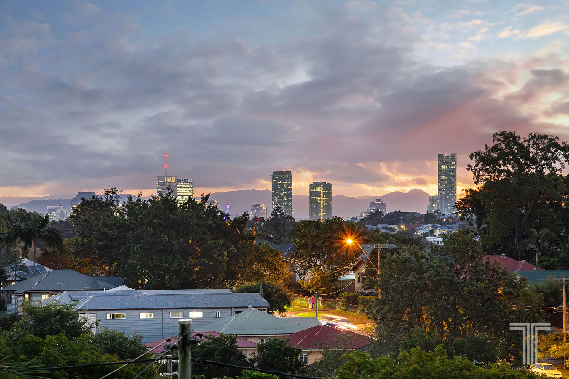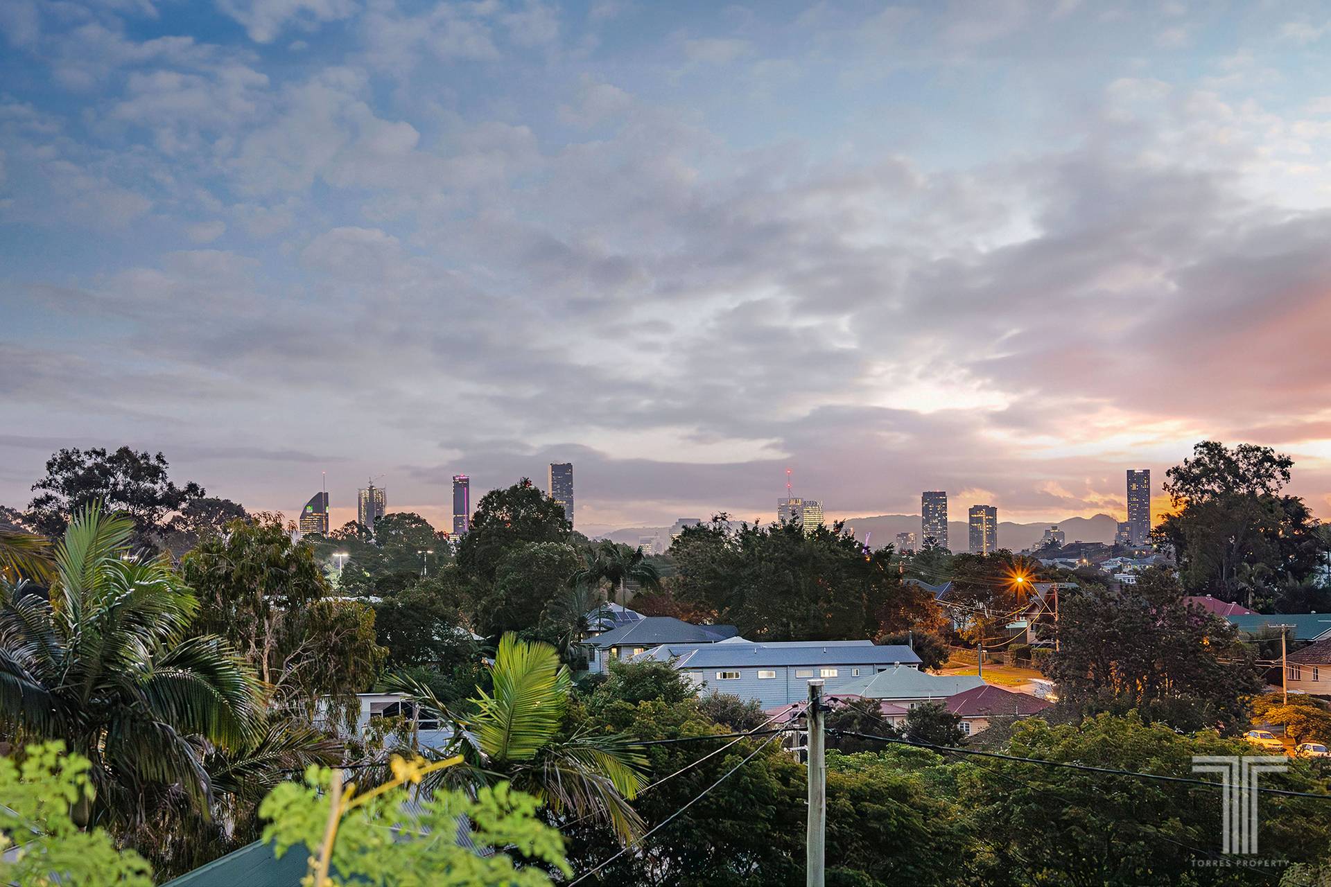 An additional living space resides upstairs and extends to a balcony where you can breathe in the expansive views across the treetops, suburbs and city skyscrapers.