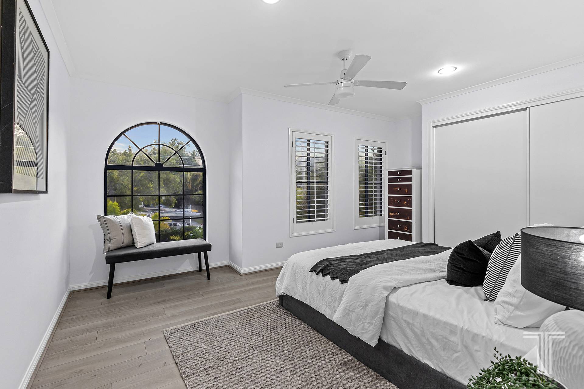 Wonderfully spacious, perfectly positioned , and elevated on a north-facing parcel, this six-bedroom home is a private oasis capturing far-reaching views across the suburbs and city.