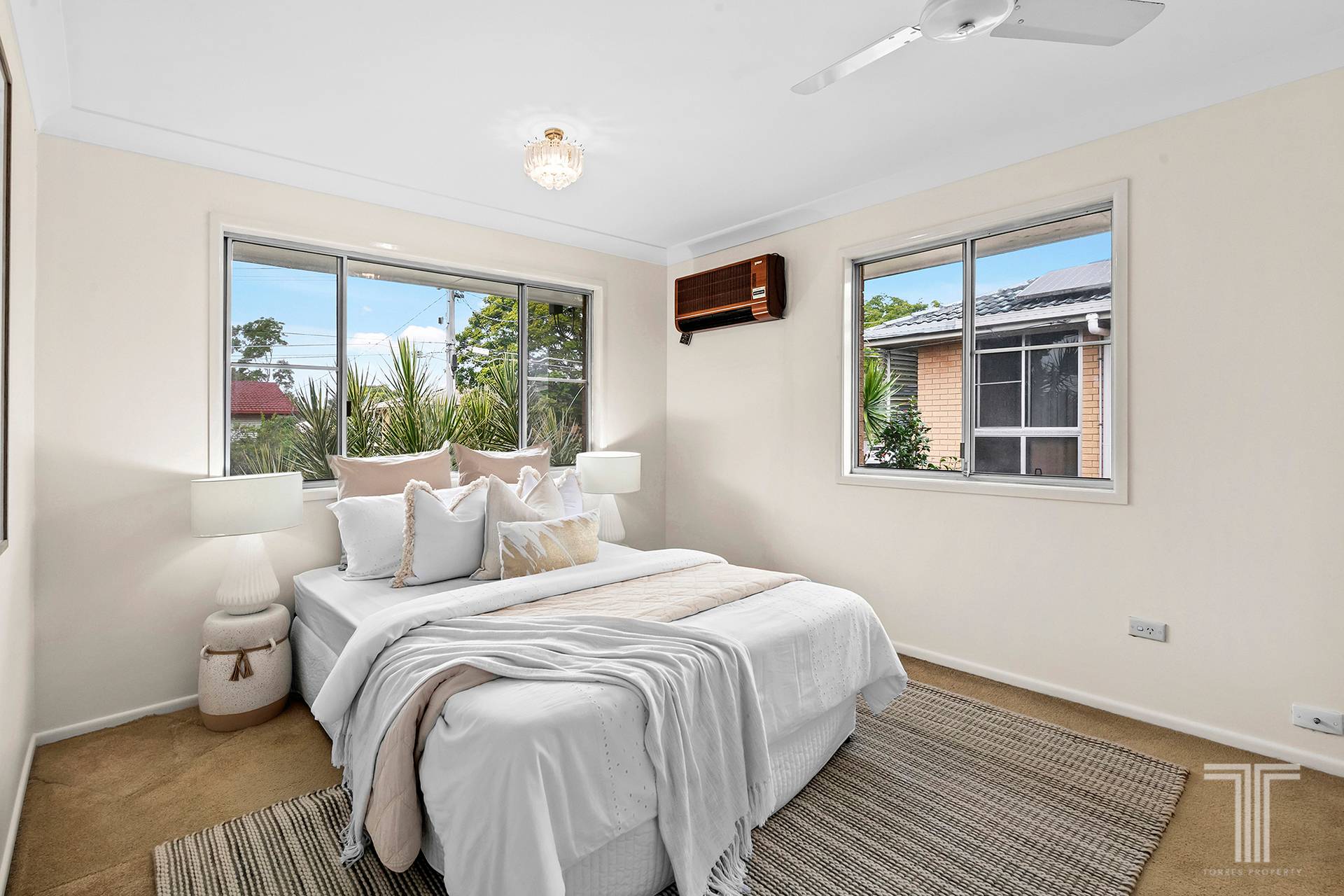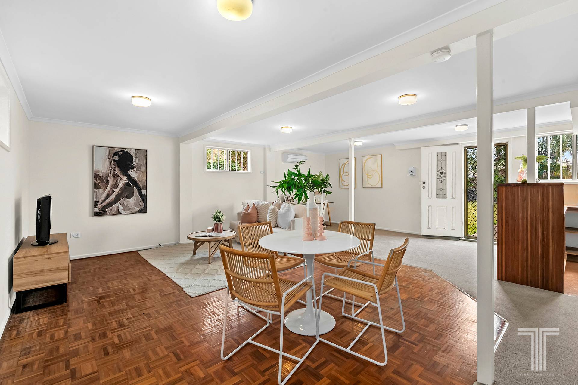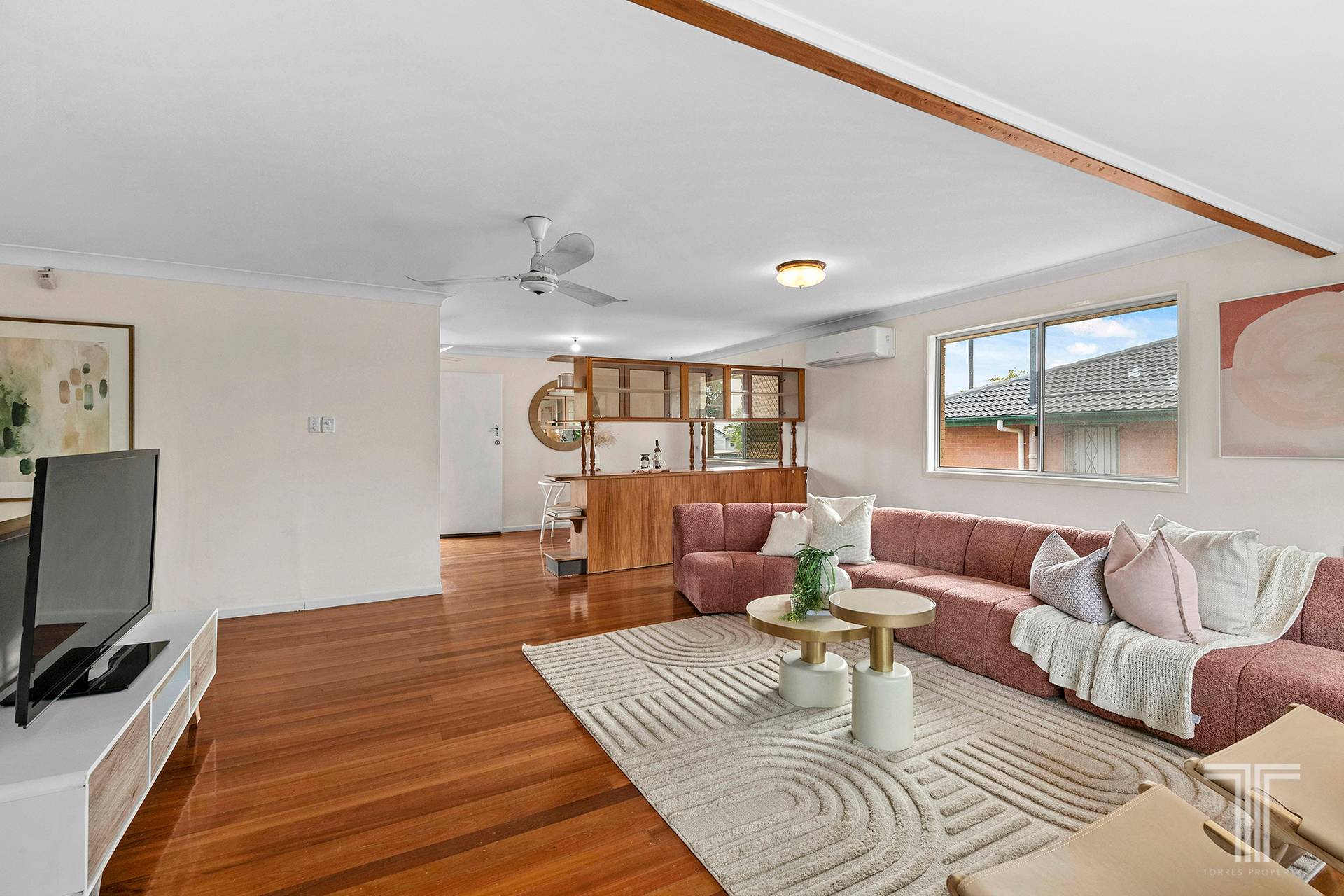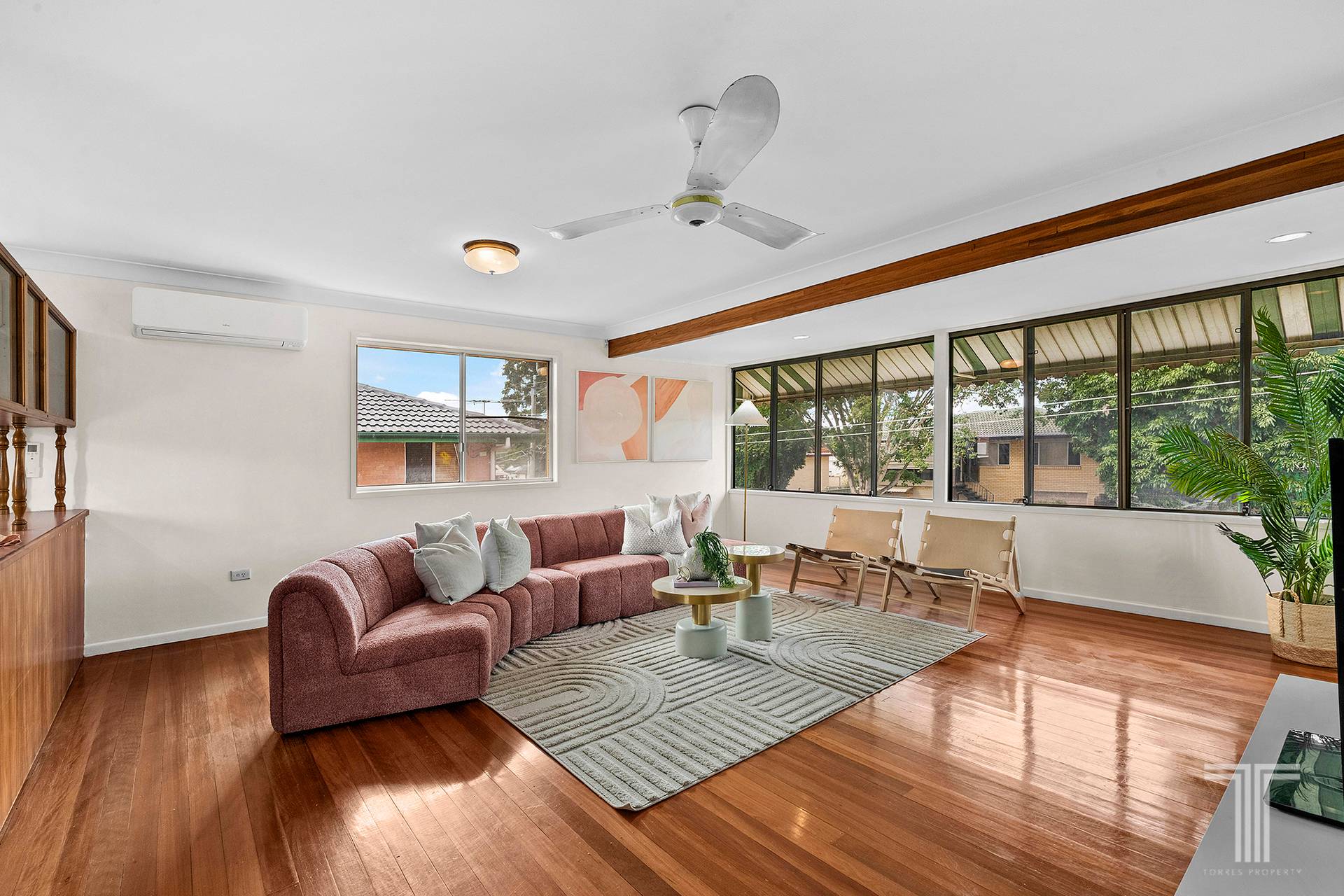 - Air-conditioning, ceiling fans, timber floors