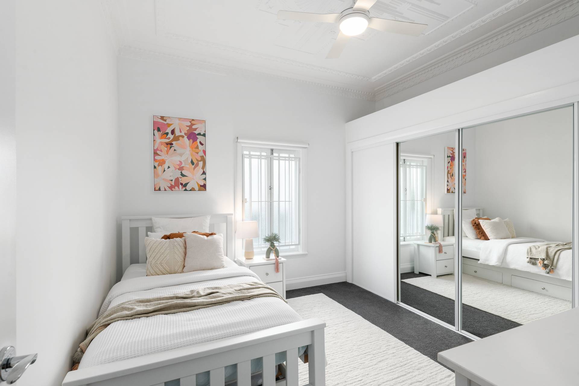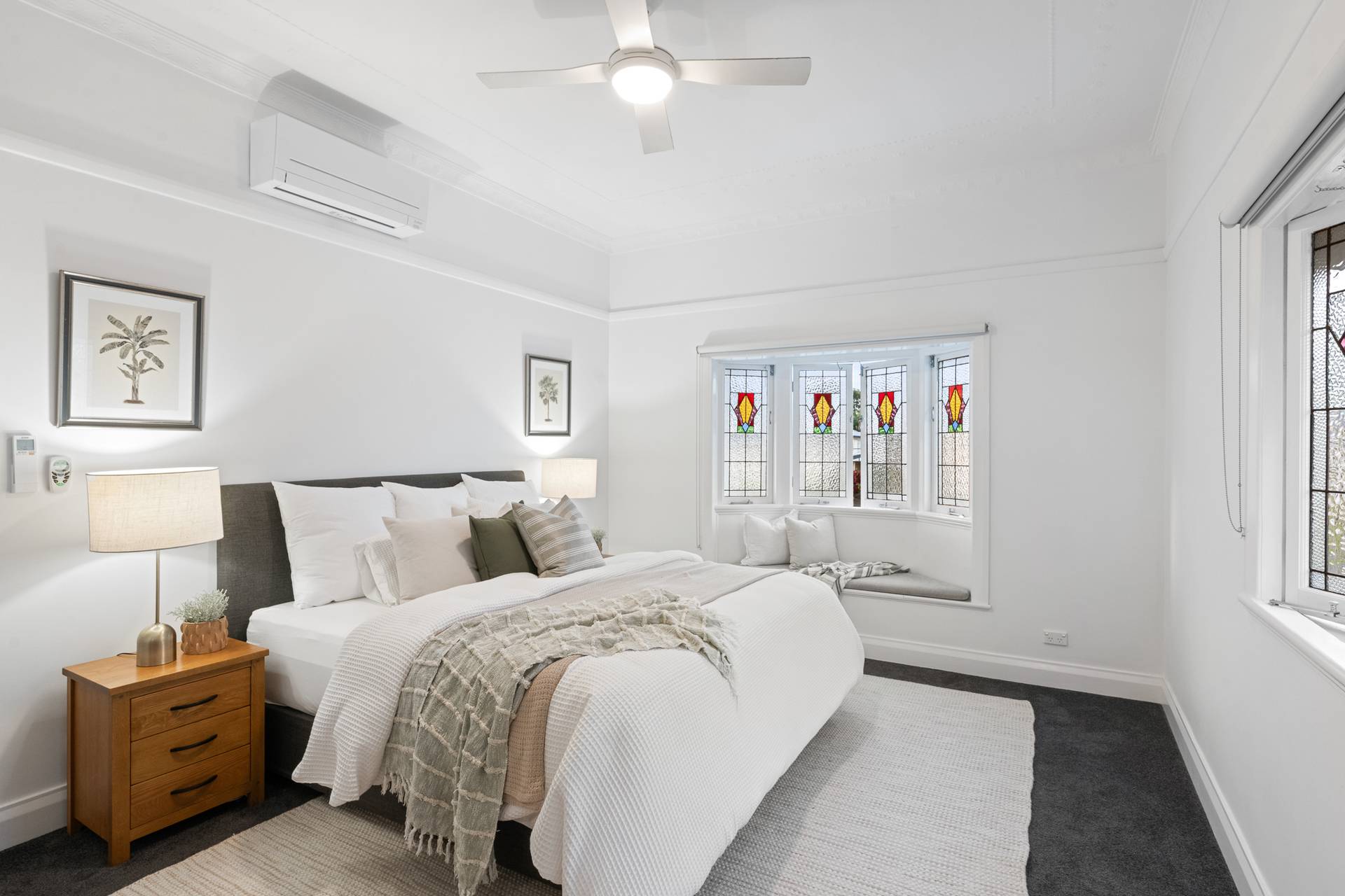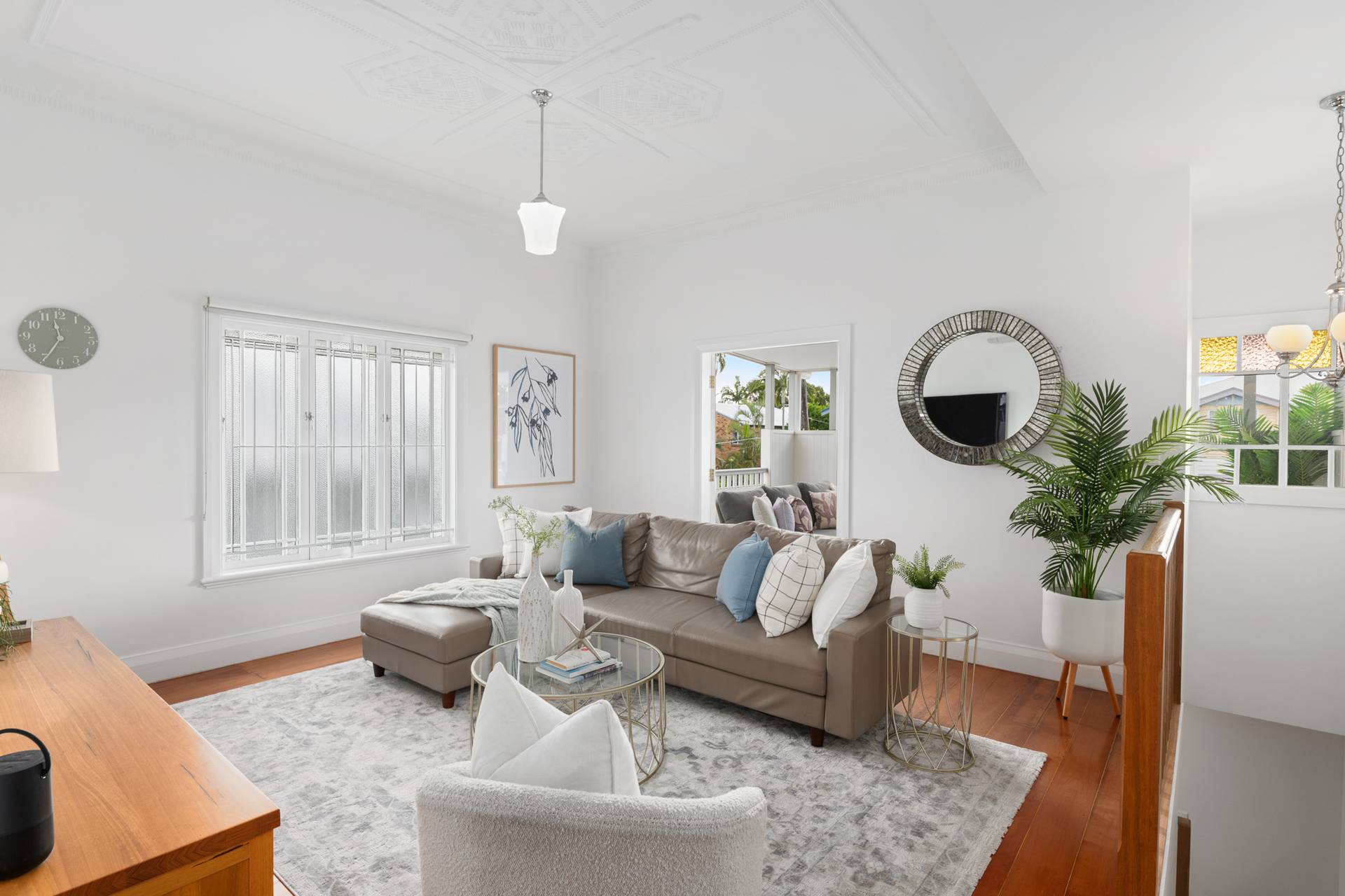 Elegantly adorned with sophisticated style, the home's upper floor retains classic ornate ceilings and period appeal, while the lower level embraces meticulous modern design with French oak floors, fresh paint and plantation shutters.