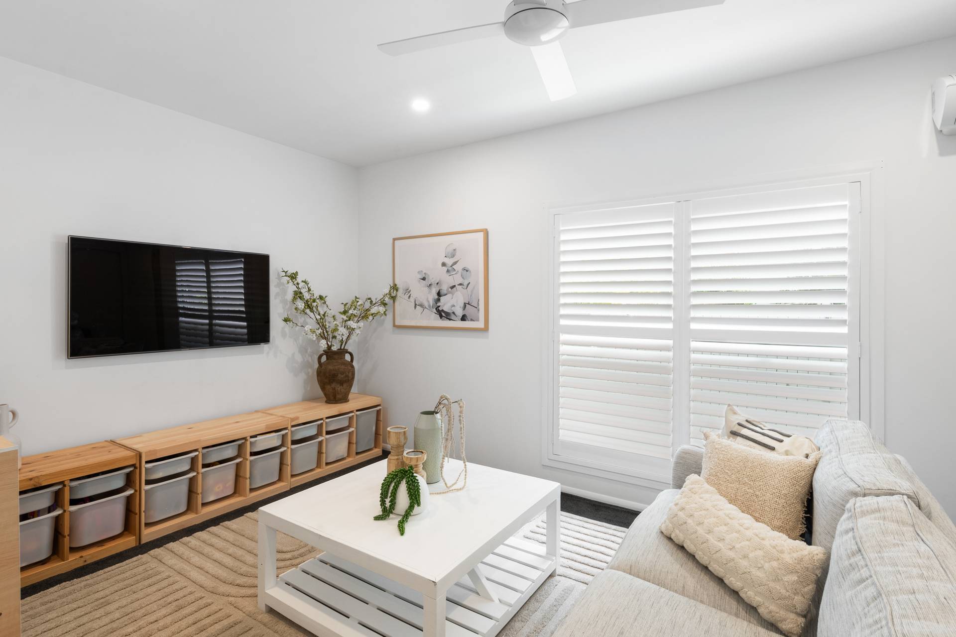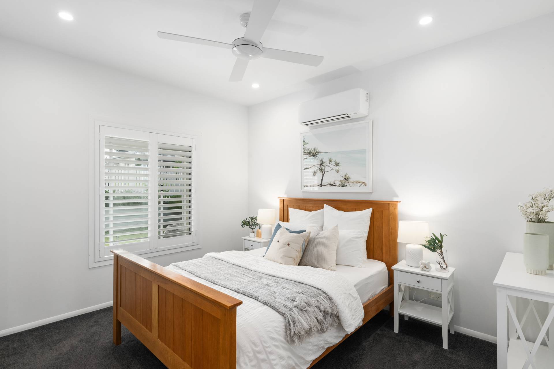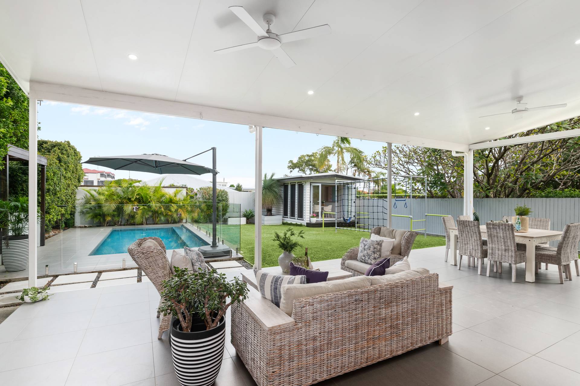 Alfresco dining, parties, and entertainment can be enjoyed outdoors, with a large terrace nestled by the flat backyard and heated swimming pool, which boasts a daybed for lounging in the sunshine. With a separate studio also featuring outside, buyers are offered a retreat for kids, hobbies, or working from home.