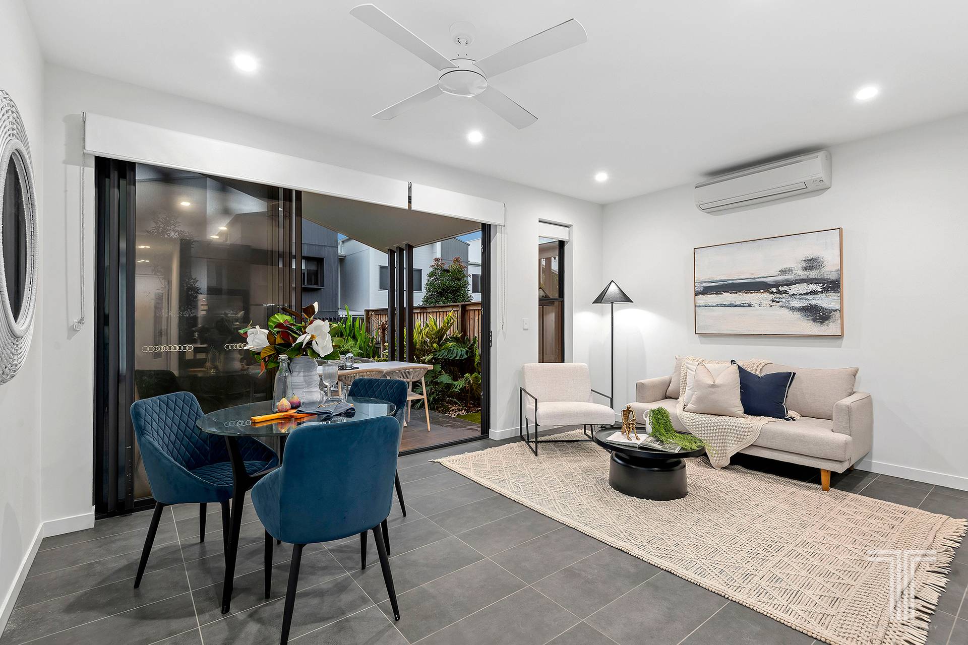 Ceiling fans and LED lights are featured throughout the home, and Daikin air conditioning is found in the living area and master bedroom.