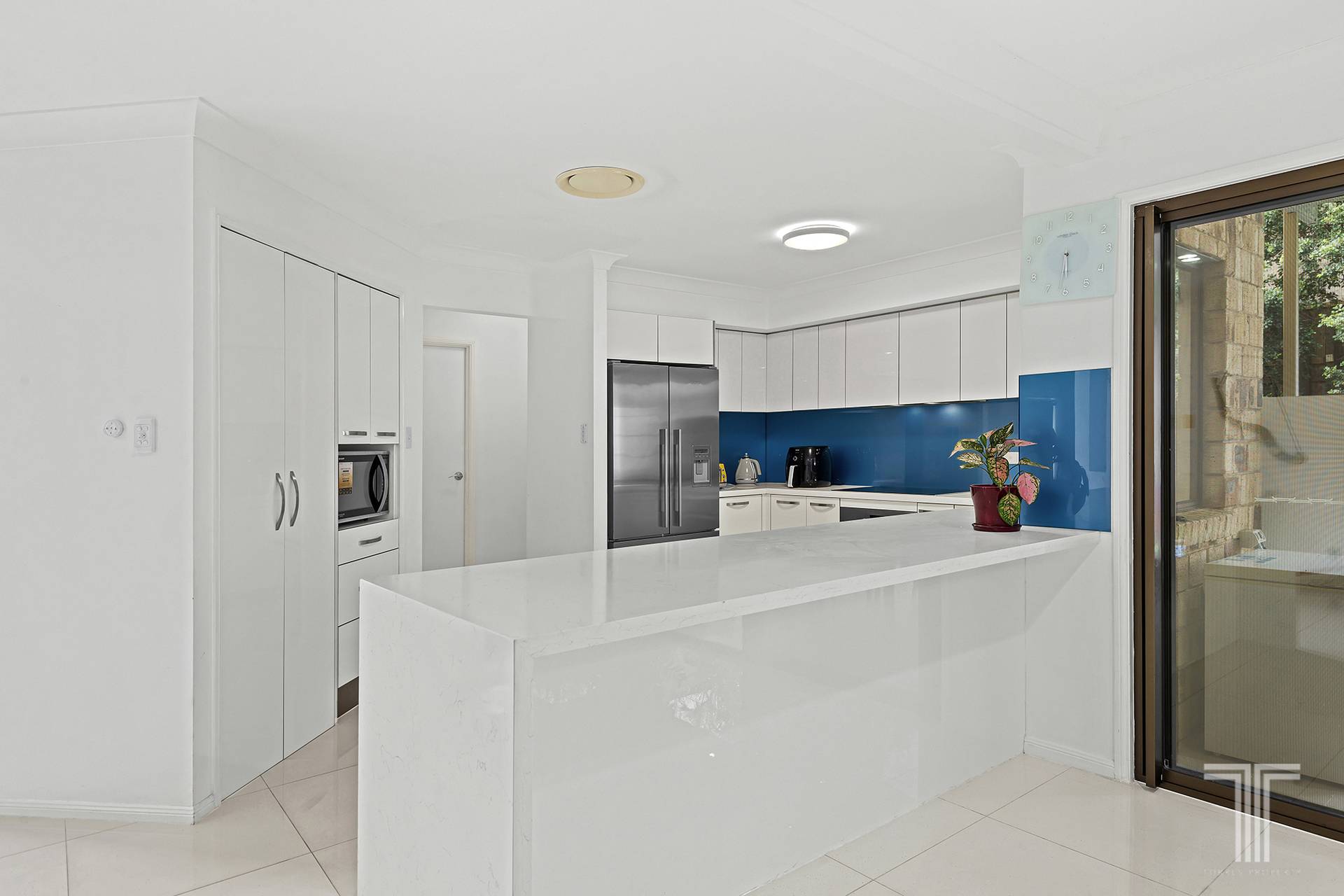 Offering total privacy and serenity behind secure gates, the spacious floor plan features an open layout with family, living and dining areas extending into the stylish kitchen, adorned with stone benchtops and stainless steel appliances.