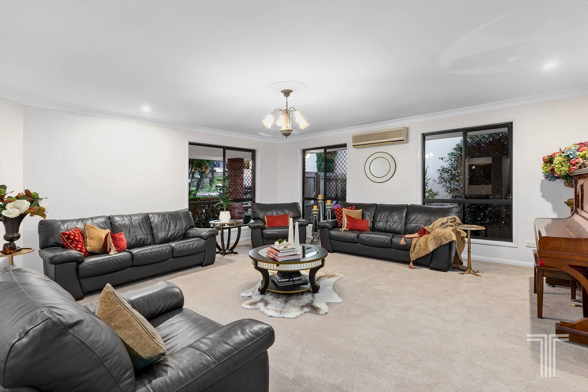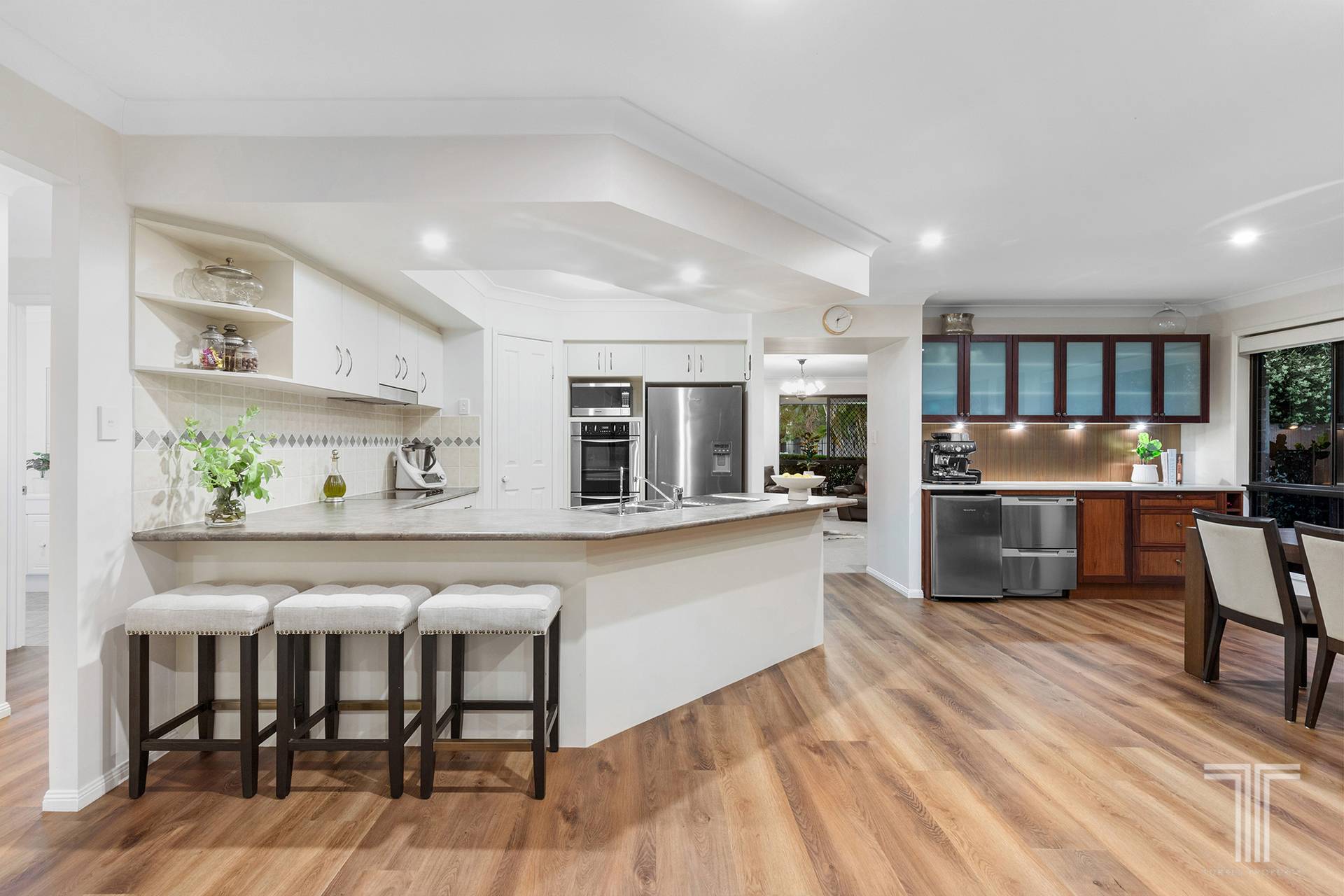 Alluring style and lifestyle comfort are reflected across the flowing and sophisticated design. The formal lounge welcomes you inside and guides you effortlessly into the expansive living and dining area, where you can unwind, gather and enjoy a drink prepared at the entertainer's bar. Produce culinary creations in the gourmet chef's kitchen, which has been expertly crafted with a breakfast bar, oversized benchtops, ample storage and a large pantry.