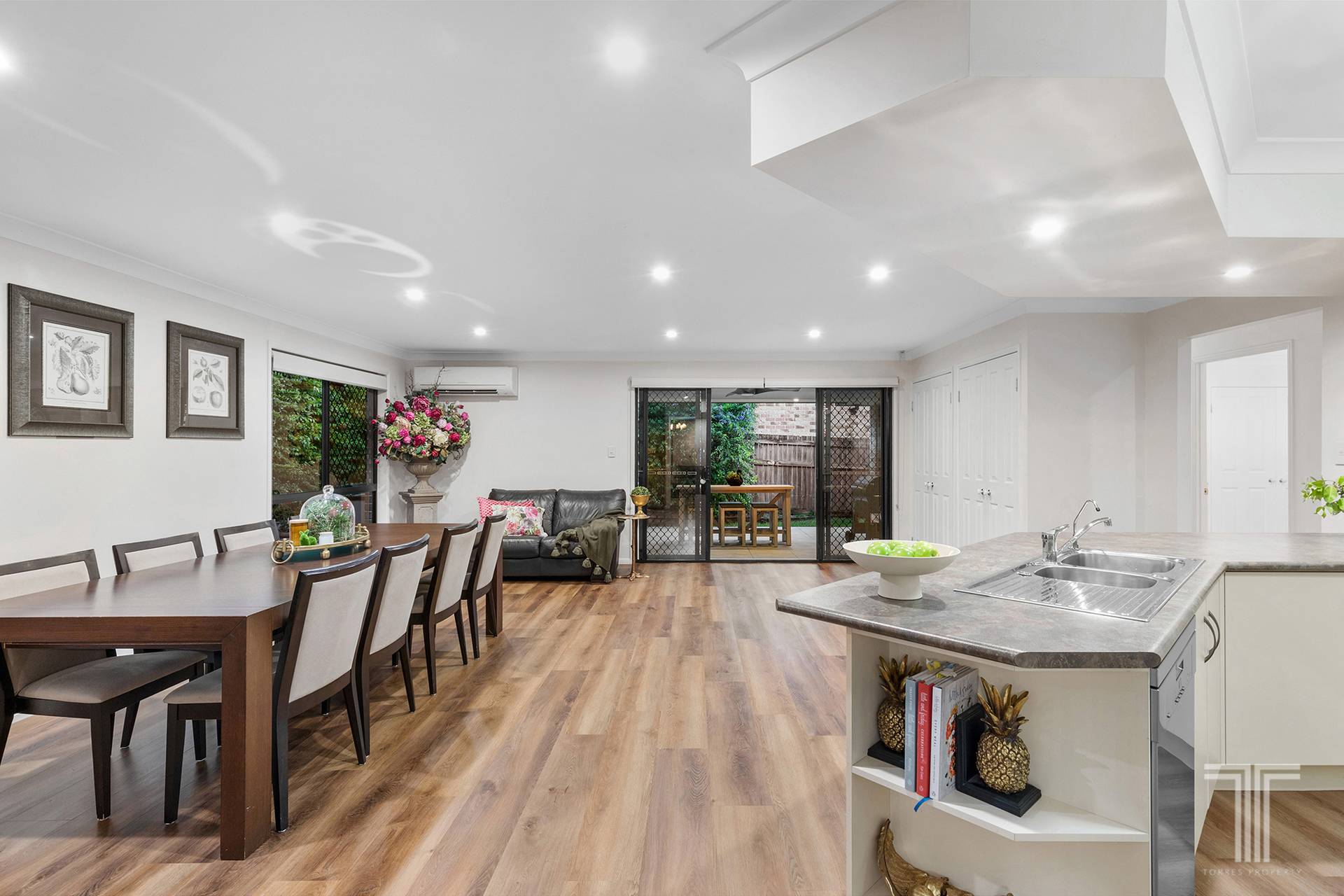 Seamlessly blending contemporary appointments with modern elegance and low-maintenance living, the house unveils exquisite interiors adorned with statement lighting, new carpet and stunning timber-look flooring.