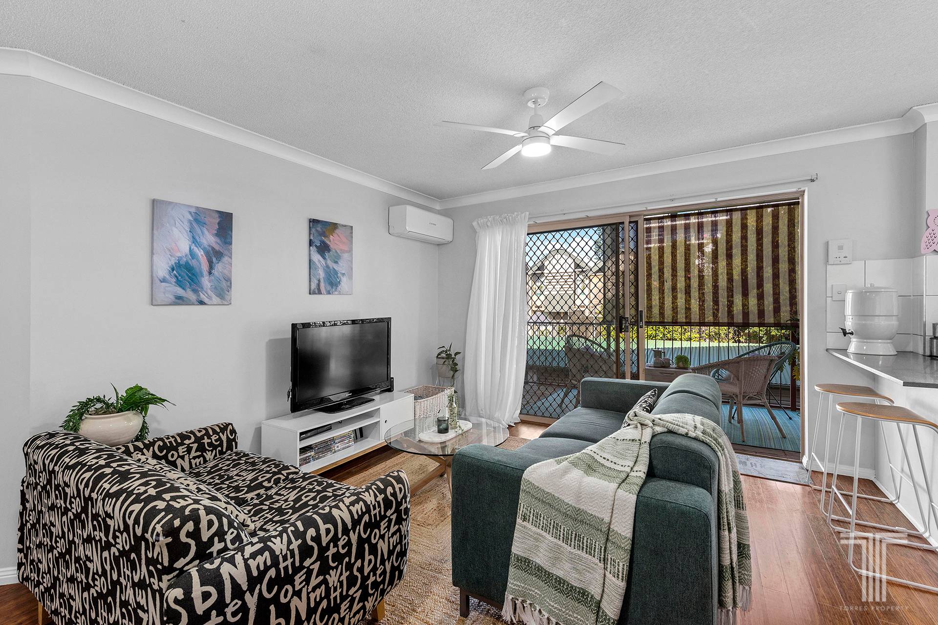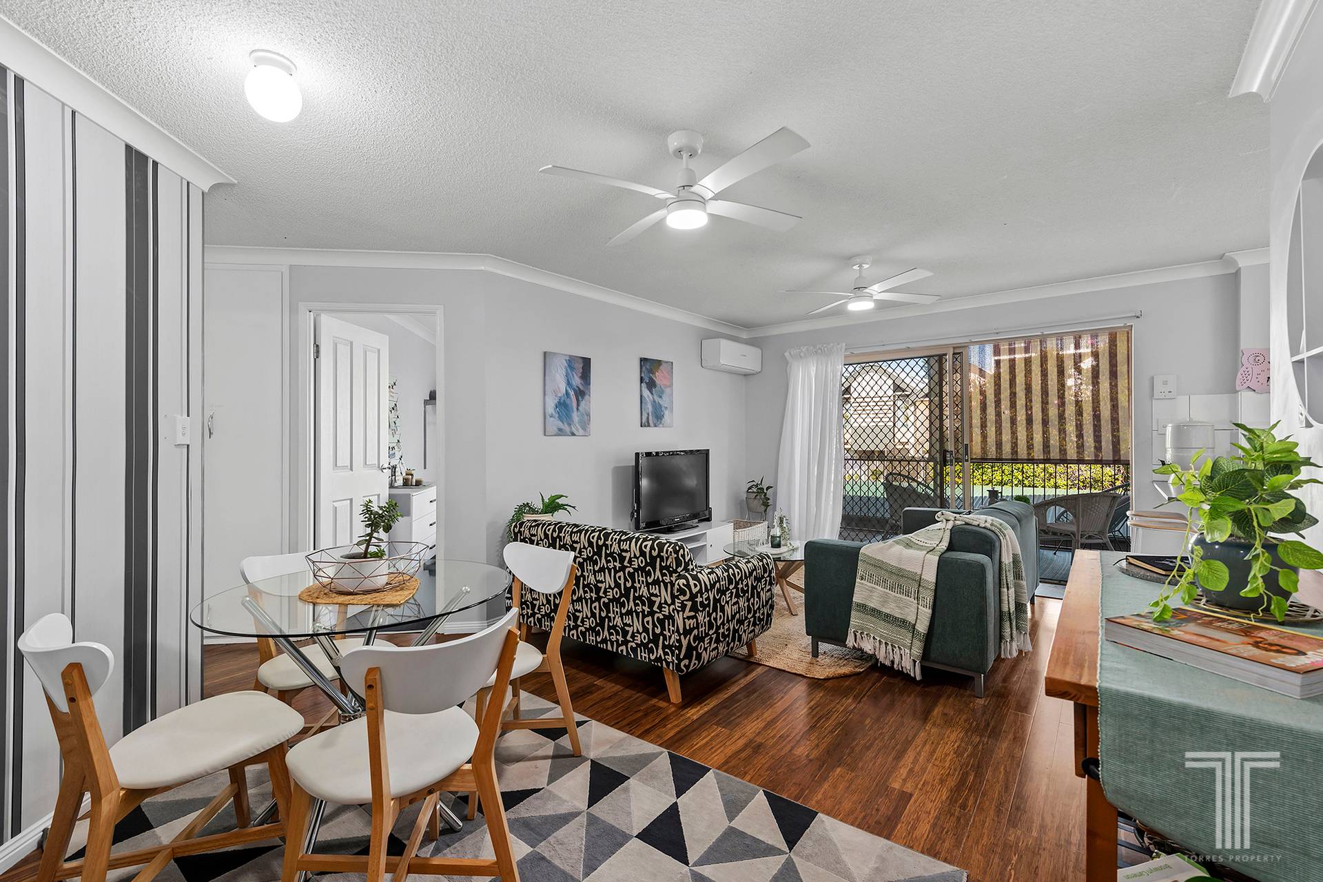 - Air-conditioning, ceiling fans, security screens