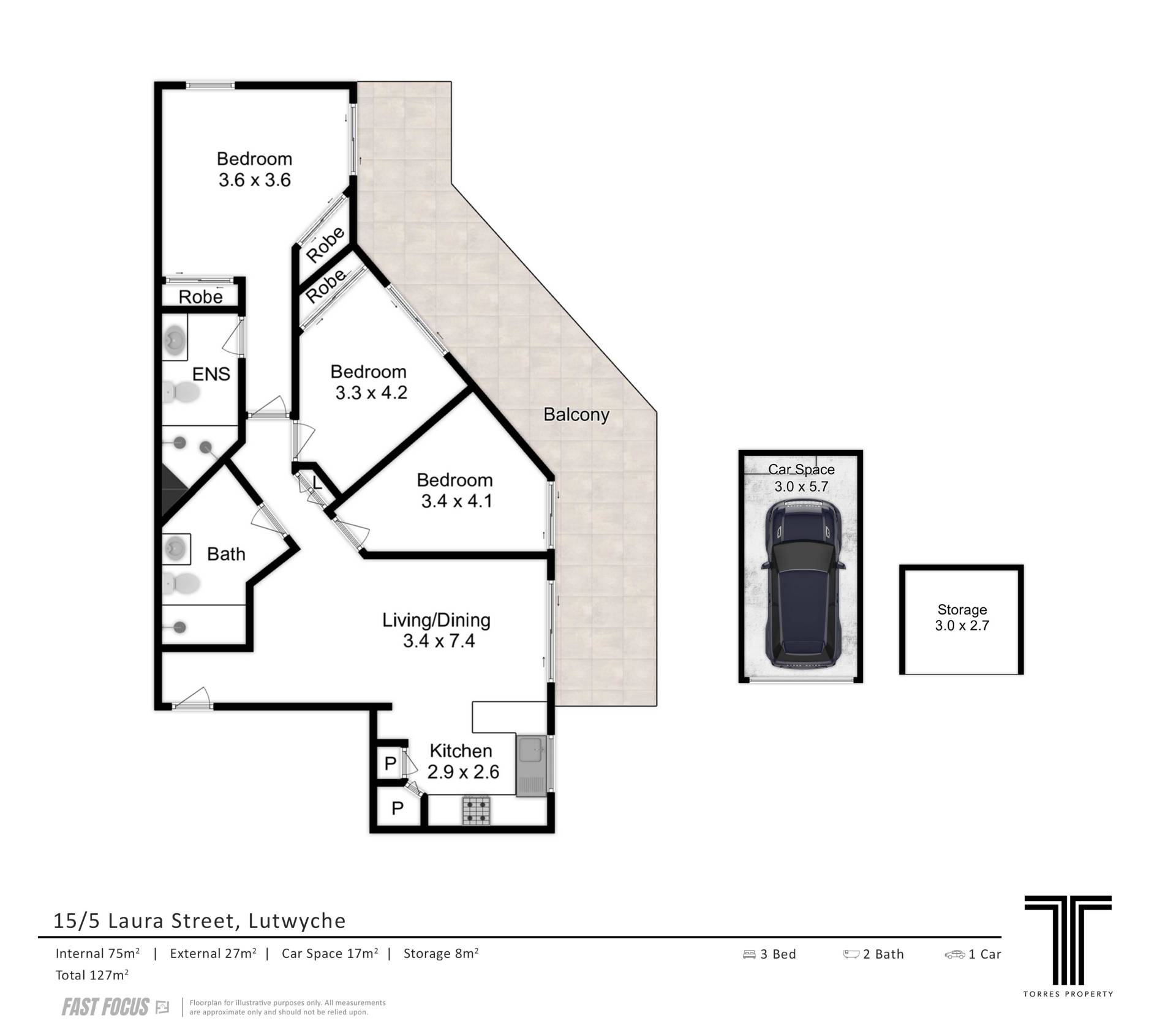 Disclaimer: Whilst every care is taken in the preparation of the information contained in this marketing, Torres Property will not be held liable for any errors in typing or information. All interested parties should rely upon their own enquiries in order to determine whether or not this information is in fact accurate.