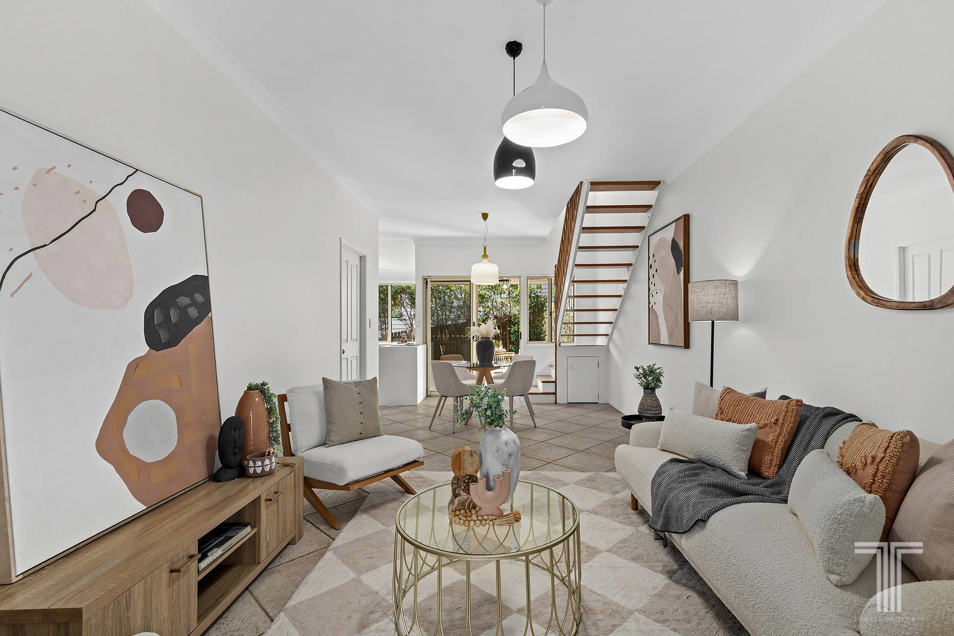 Inviting indoor/outdoor living, the interiors stretch out to a private entry courtyard and a rear alfresco terrace, which form a blissful retreat for entertaining, peaceful relaxation, family BBQs, or playtime with young kids.